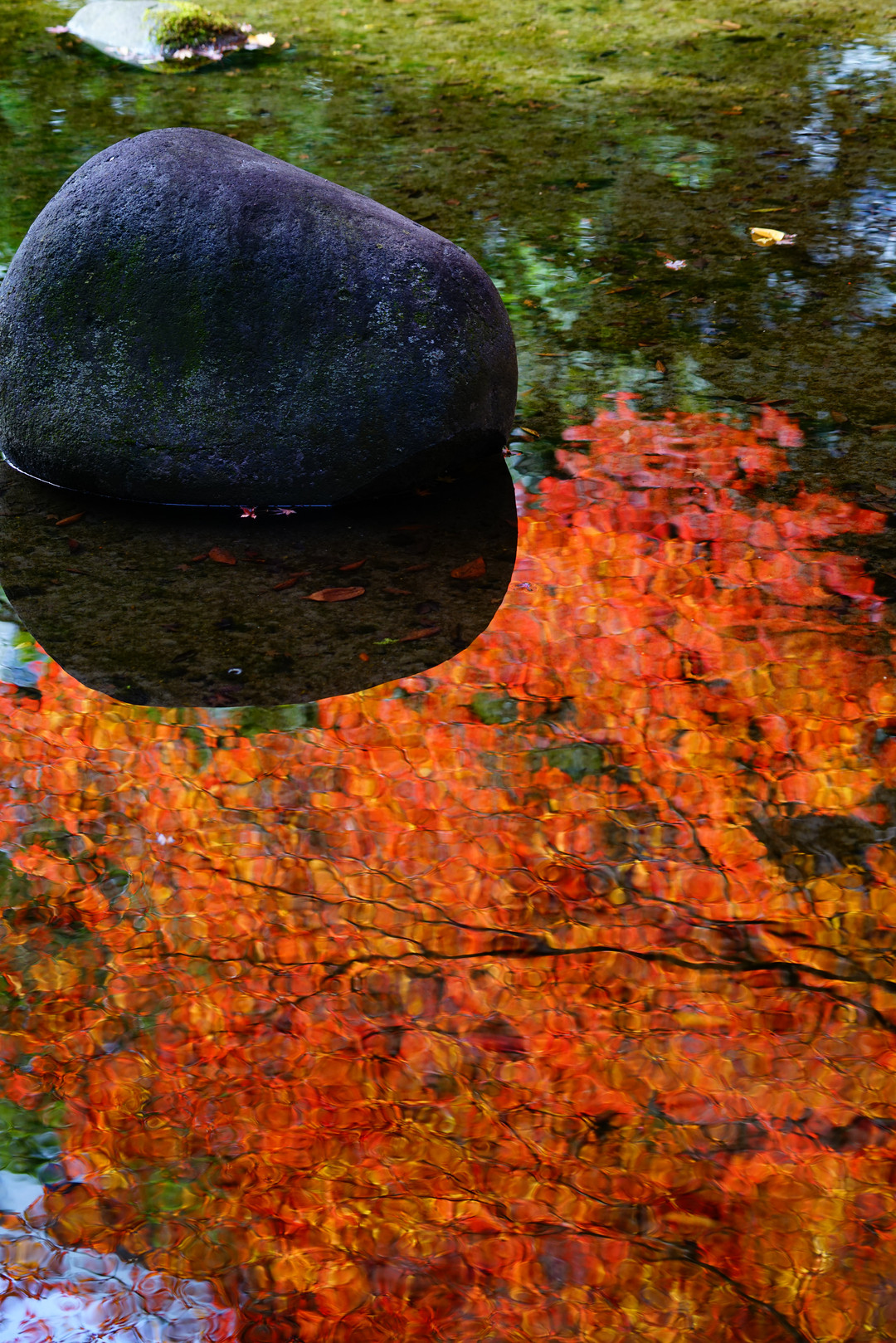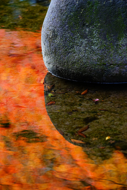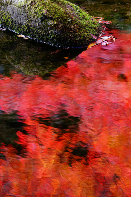 水面に映る紅