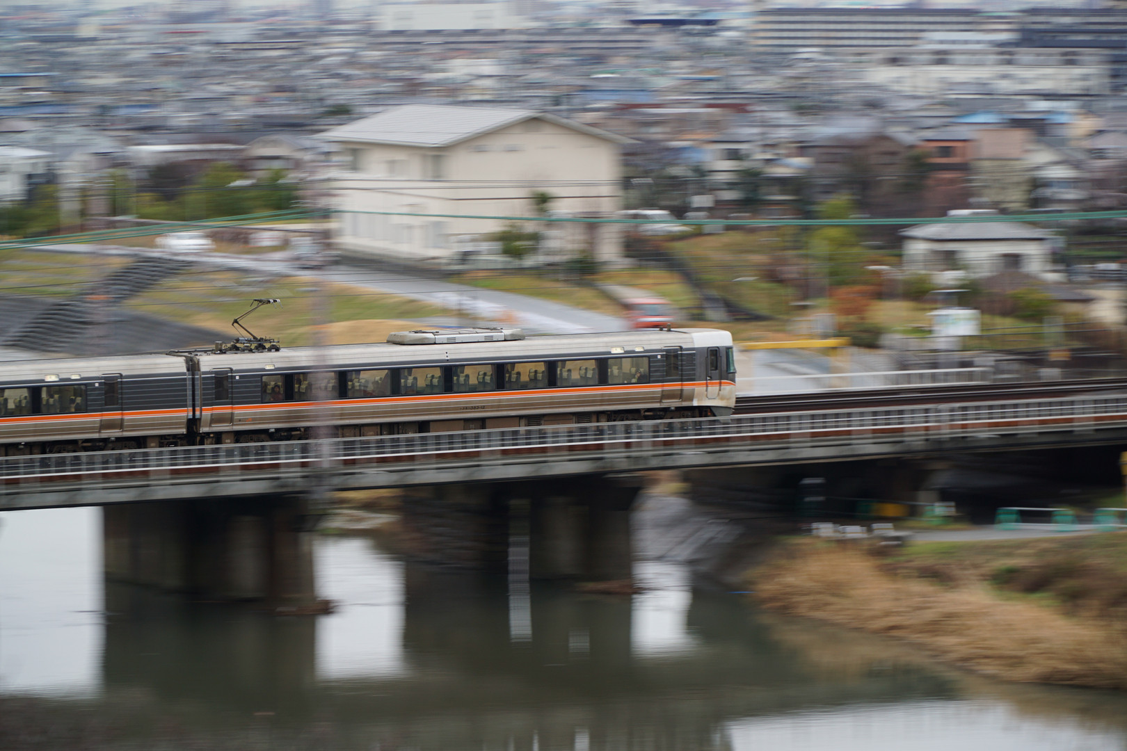 流し撮りを毎日練習していますが、この角度からだとカメラを 上手に流すのが難しいですね。 本日は特急「383系 しなの」を撮影する事が出来ました。 雨が降っていましたが、自宅から撮影する強引な技が使えるので・・・・。