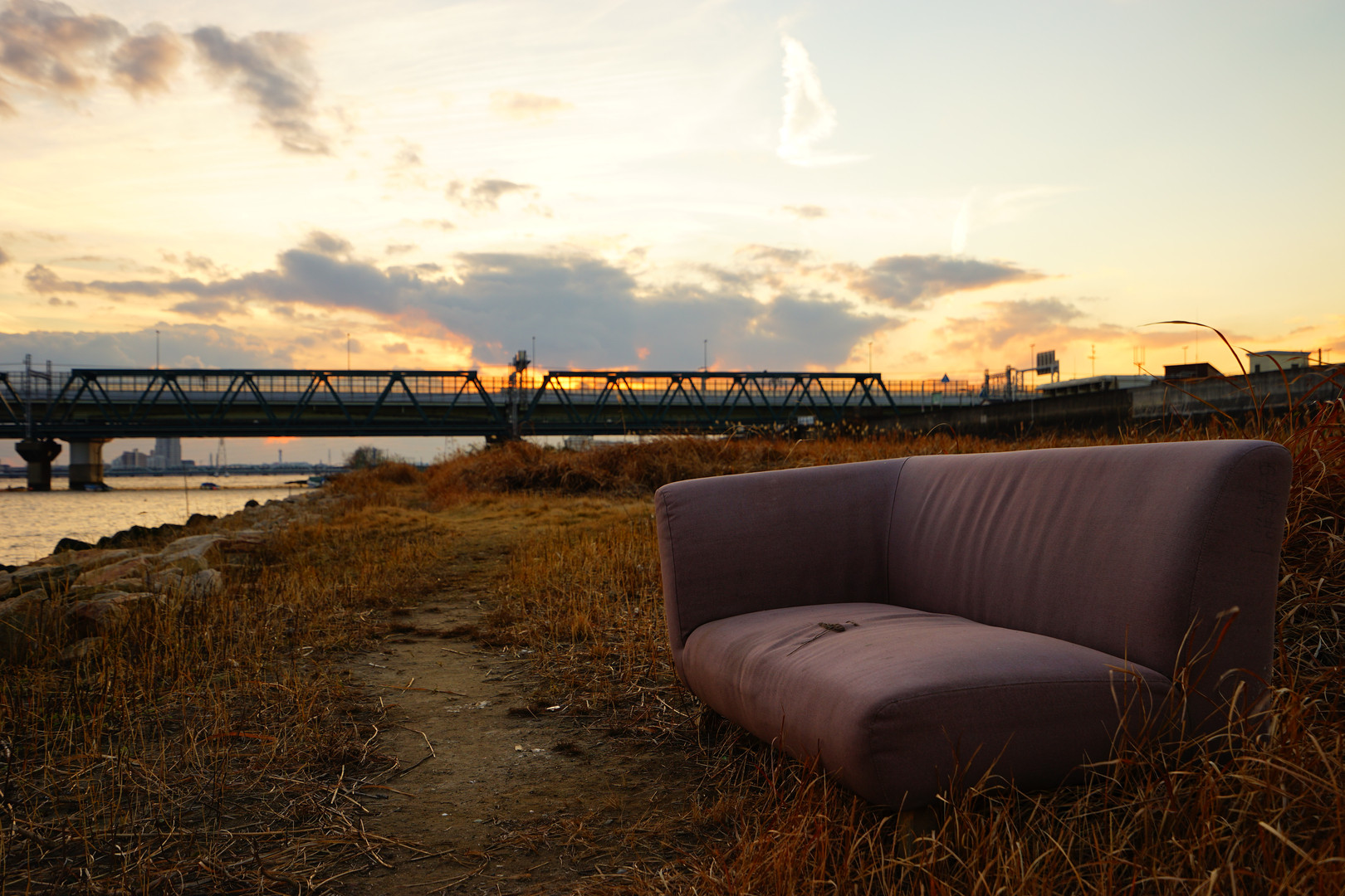 製品情報>My Sony>αcafe>河川敷にポツン。一人ぼっちのソファー(Shinji.Kさん)
