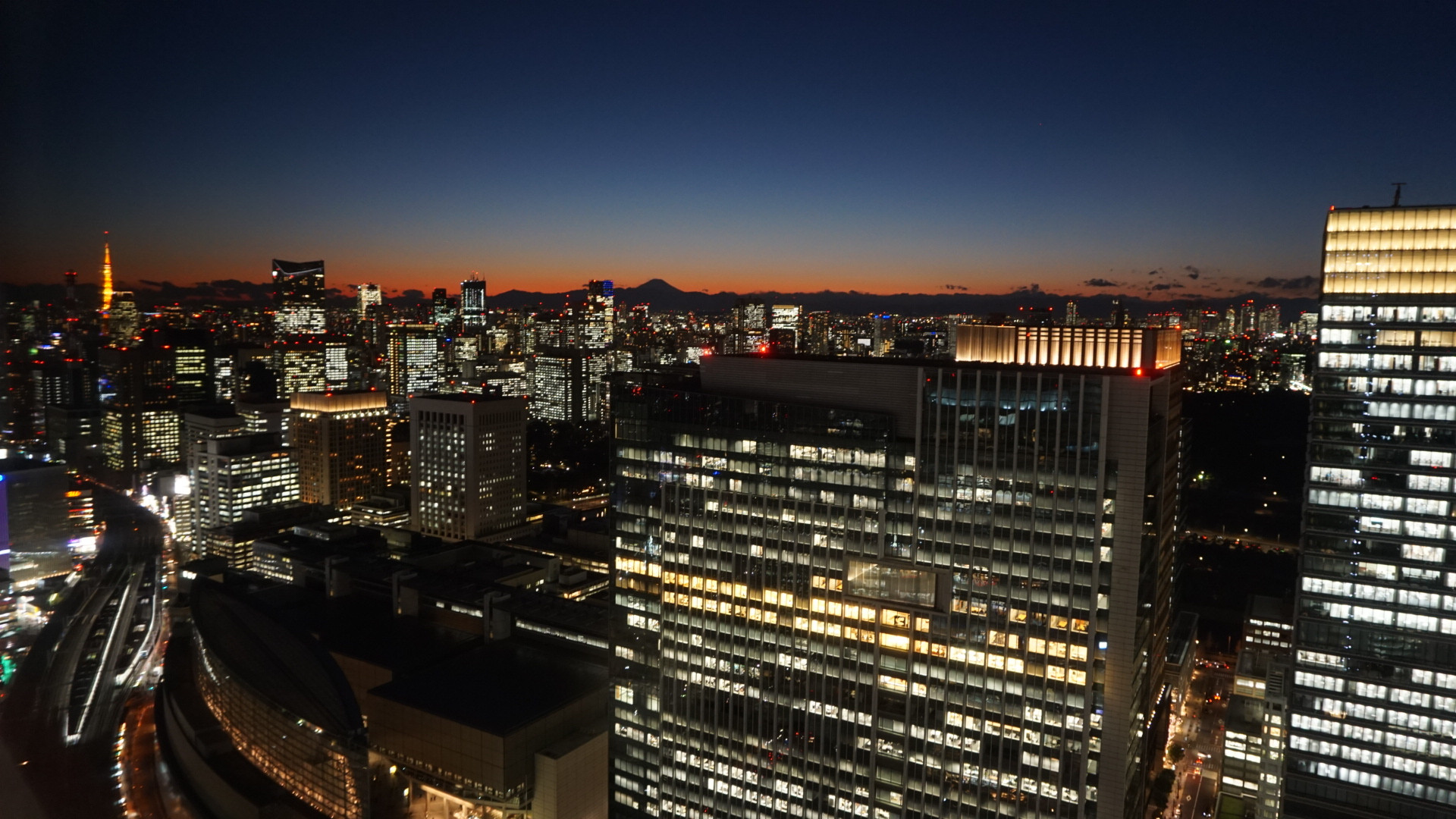 今日は気持ちのいい冬晴れだったので、都心からでも富士山を望む夕焼けが鮮やかでした(^^ )