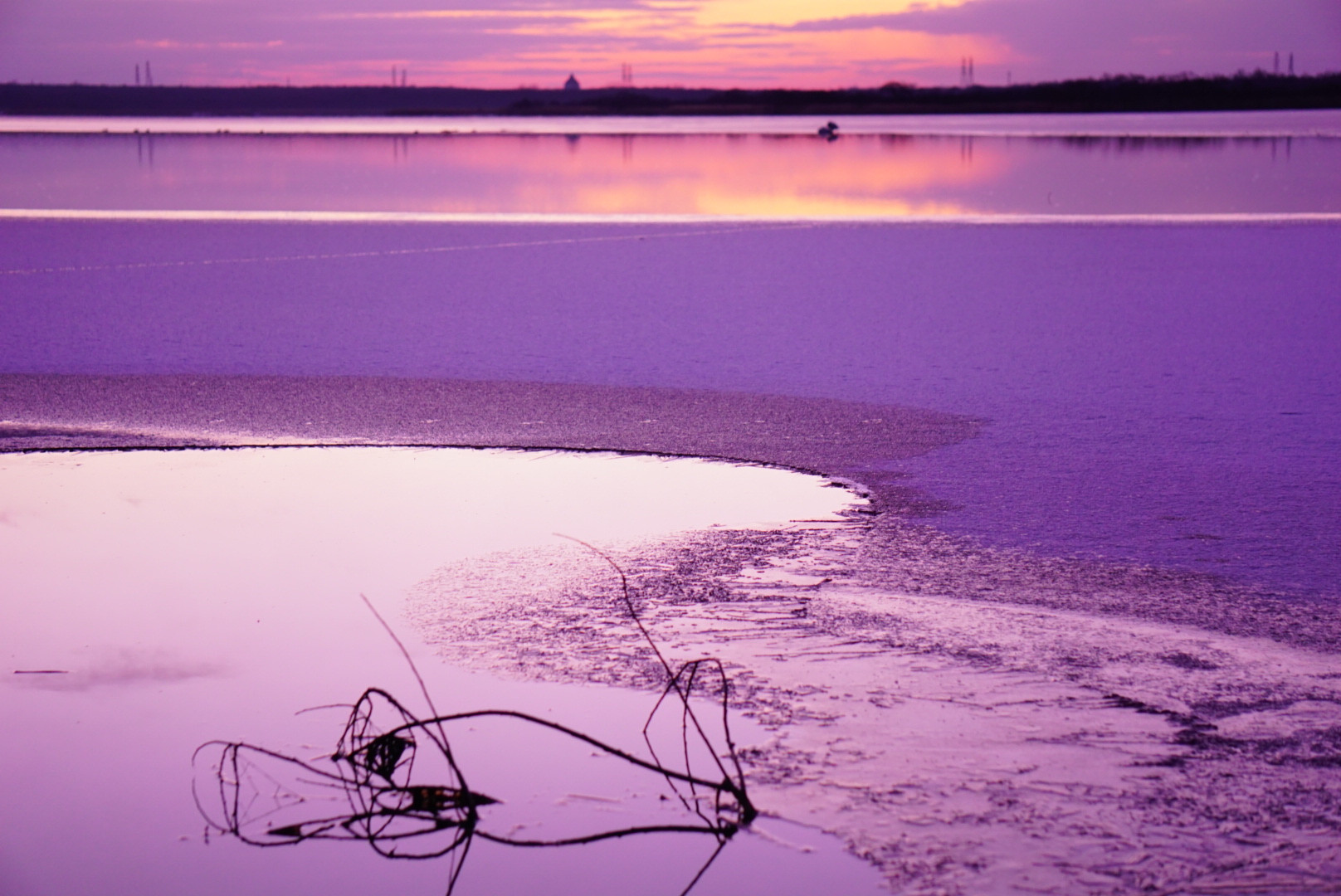 今年の元旦の待ちわびる初日の出まえです~♪ 沖の方に2羽の白鳥が佇んでます。 パープルに染まり美しかったです~(*^-^*)♪**"