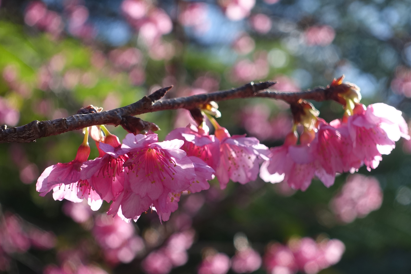 今年の初桜です。ソメイヨシノとは違い濃いピンクが特徴です。