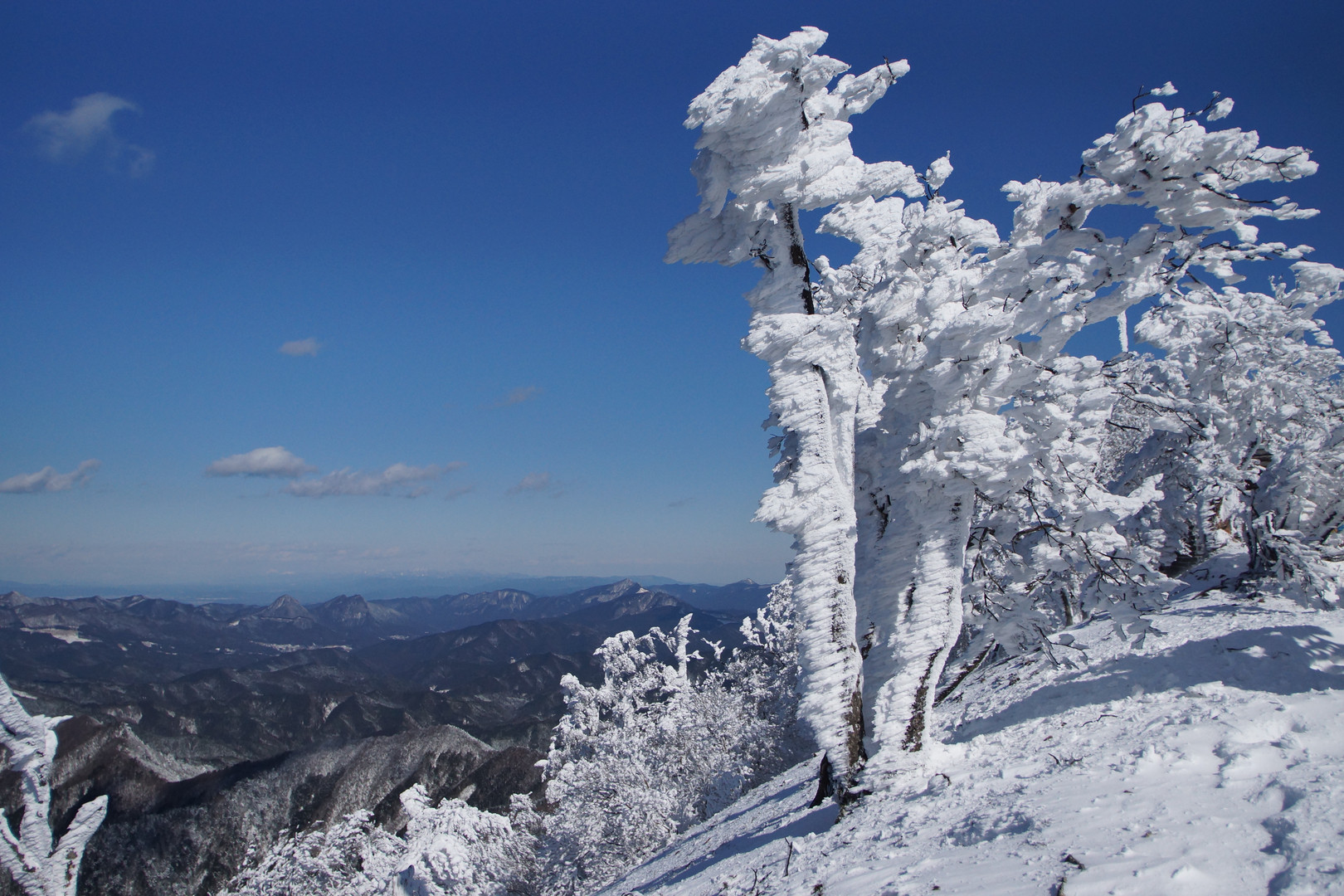 厳冬の厳しなか山々を見下ろす冬の造形。