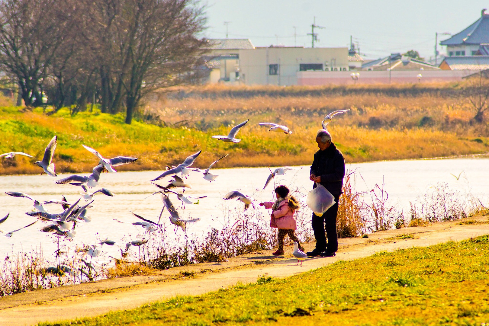 今日は望遠の試し撮りのため河川敷を歩いていたら微笑ましい光景が(≧∇≦)