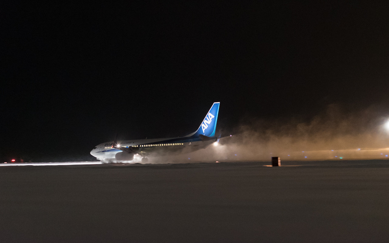 除雪の終わった滑走路に737が滑り込んできた。青い星屑をまき散らしながらフルブレーキ。