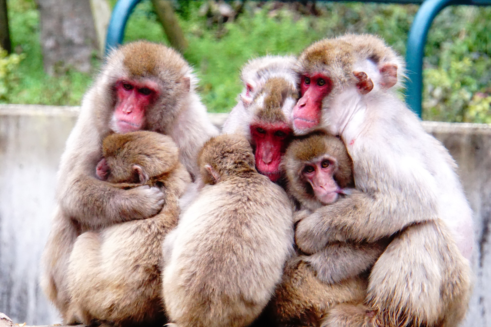 福岡動物園サル山でのひとコマ。 親子で寄り添い、寒さを凌いでいました。