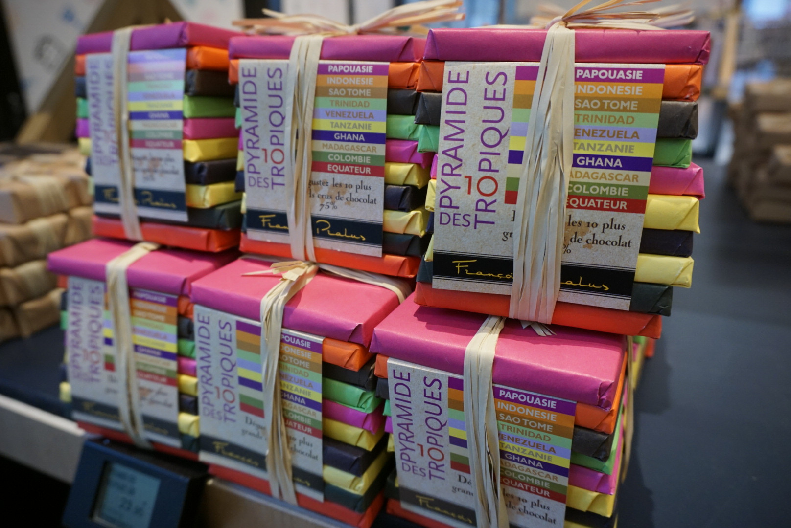 可愛いパッケージにパチリ。 タンザニアやガーナ‥産地豆別のチョコレートなのかな? フランス語がわからず中身不明^^; 旅行中、バタバタと撮ると手ぶれやピントが甘いT_T 反省
