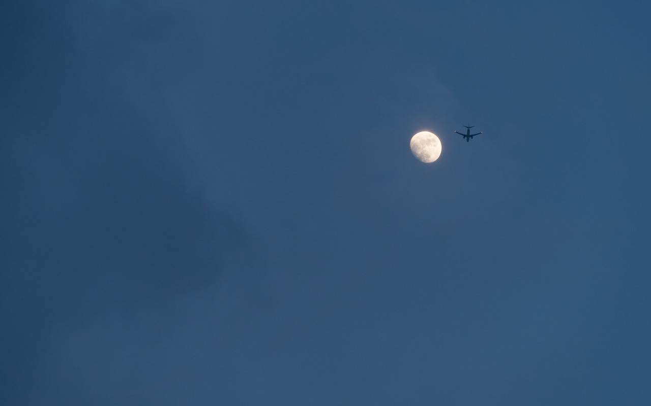ひどい吹雪が突然やみ、雲が切れ、待ち構えていたランディングには絡まない高度に月。 そこに、空港を縦断するほとんど見ないルートのハイステーションを宣言した彼女が現れ、月に連れて行ってくれた。
