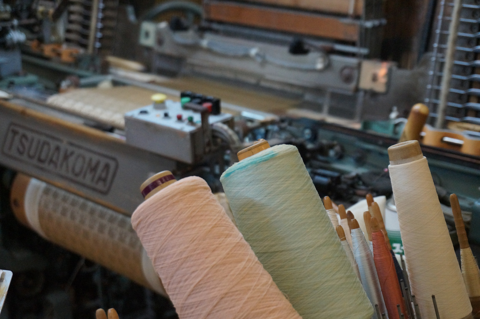 ちりめん工場を少しばかり見学させていただいたときに撮影。 今は機械で模様をプログラミングさせて織っているそうですが、 昔は手作業だったとか。緻密な手作業に、感服です。
