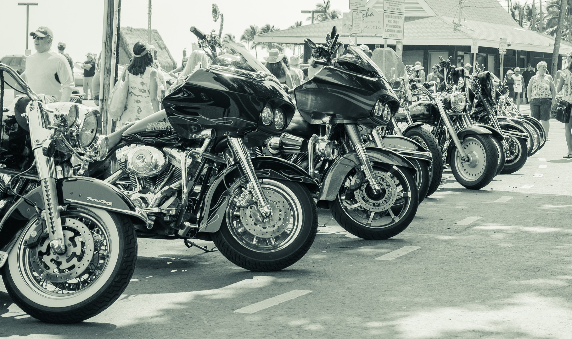 ハワイ島にてハーレー集団のバイクに遭遇