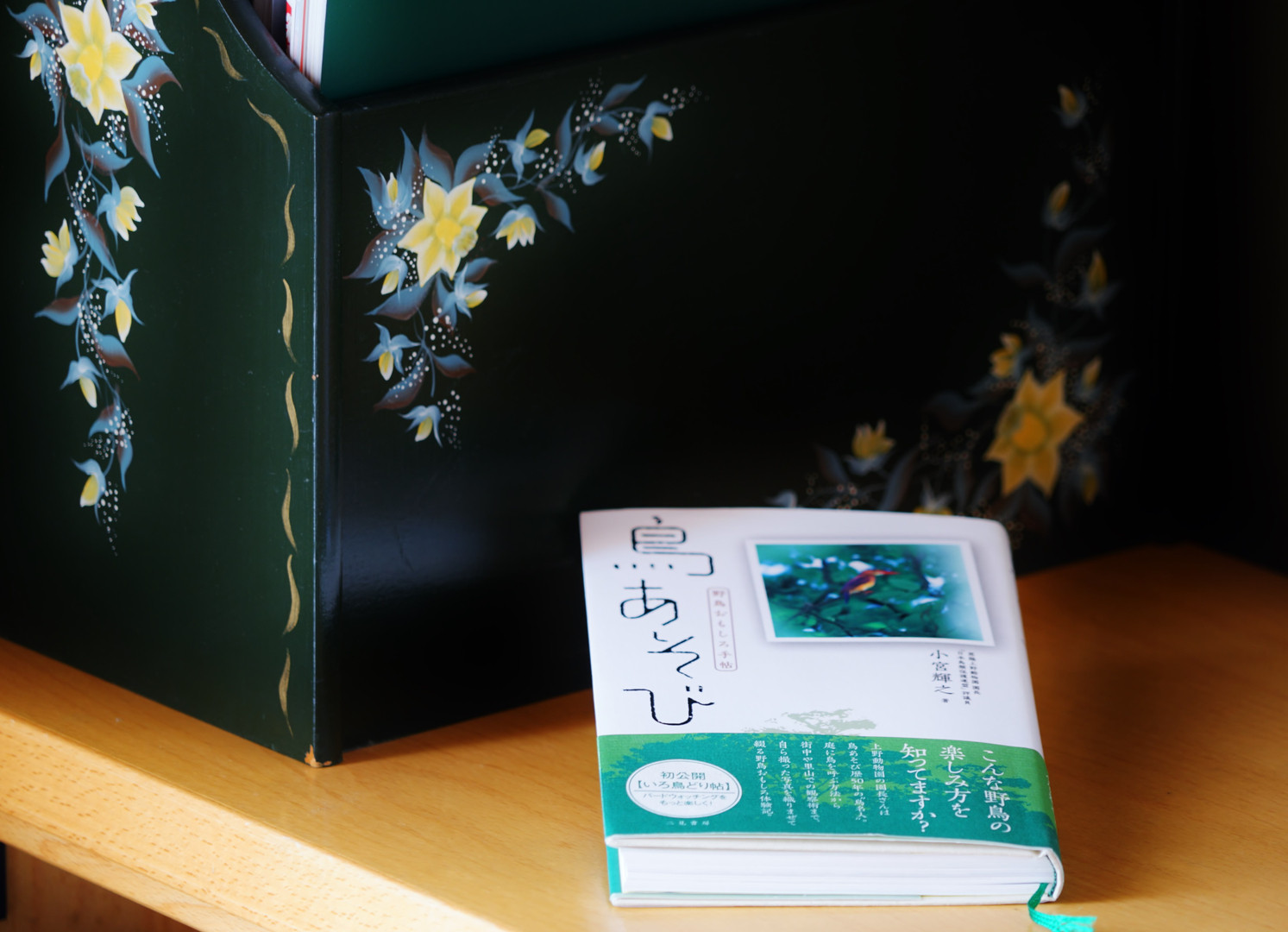 野鳥さんに興味を持ち始めた頃、友人のおすすめで購入した野鳥図鑑🐦 普通に読んでも面白い、頼りになる愛読書♪ マガジンラックは市販のものに水仙の図案でトールペイントしました🎨