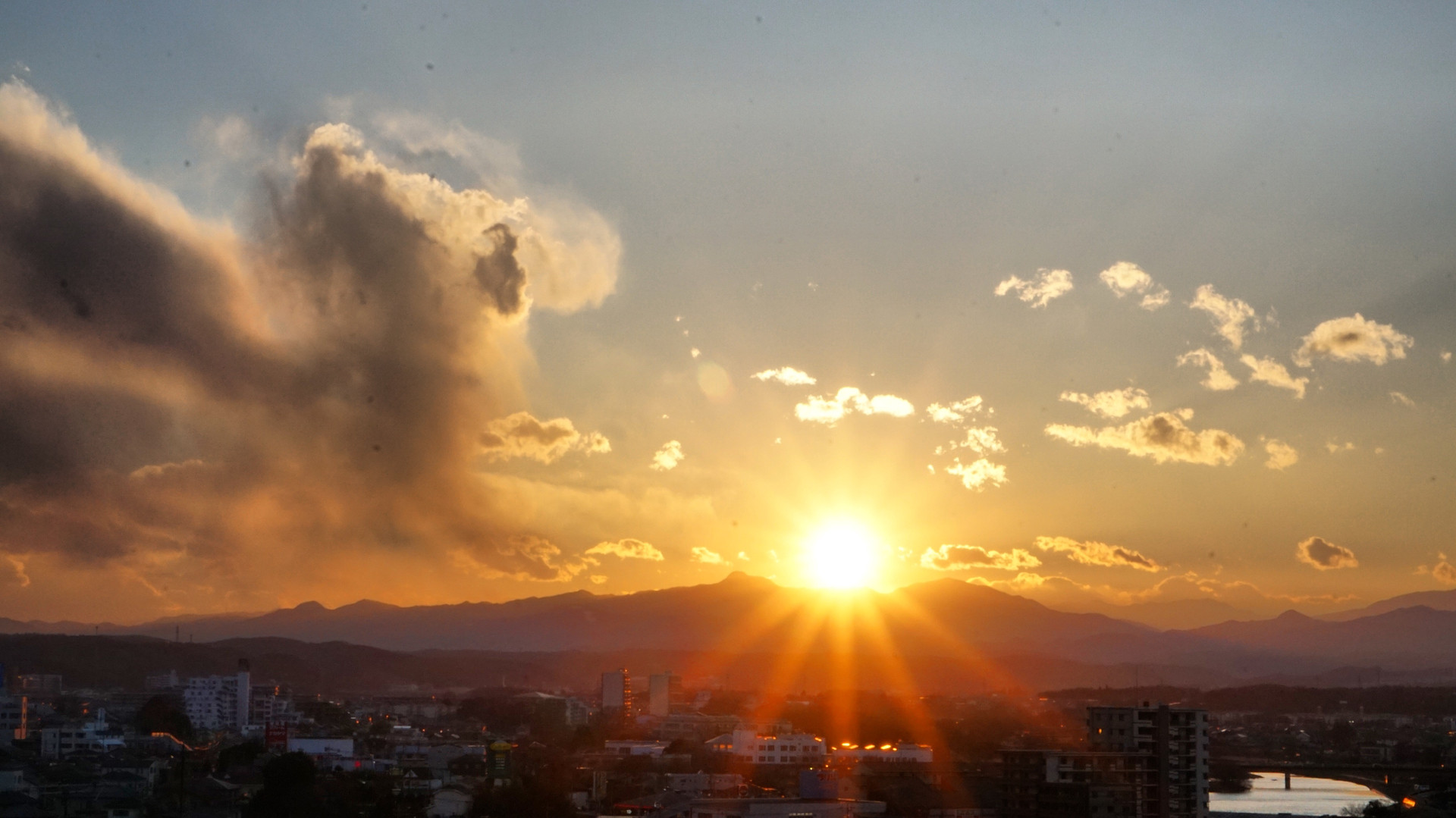 空がオレンジ色に変わり始めるとソワソワします。 自宅に戻ってバルコニーから空を… 少し神々しくもあり、いい空模様でした