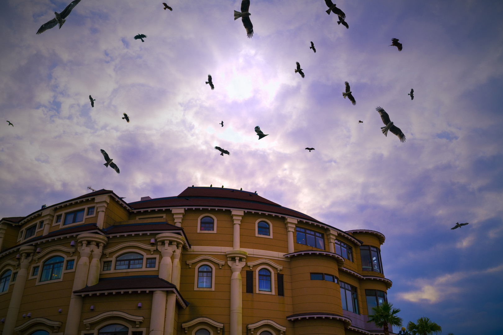 空に無数のトンビが舞っていて不気味さを醸し出していました。