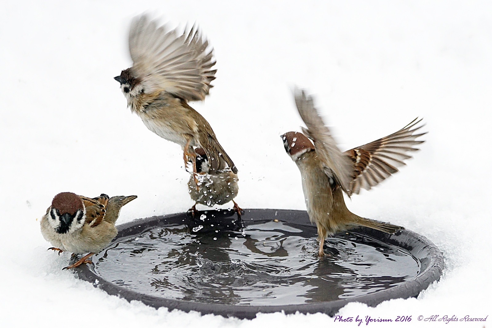 製品情報>My Sony>αcafe>スズメの水浴び(Yorisunさん)
