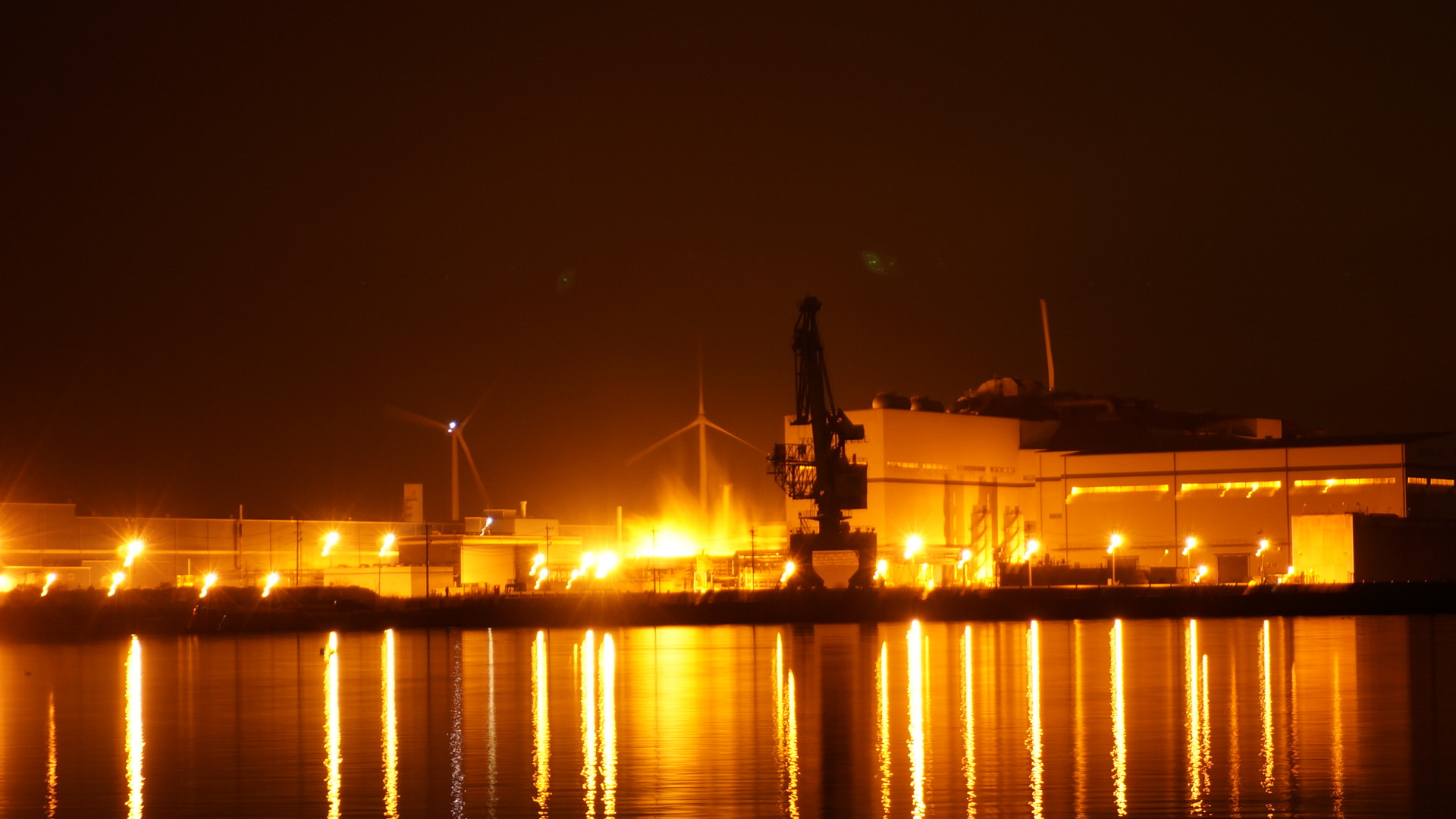 近くの岸にある工場です 波がなく穏やかな海だったのでよかったです