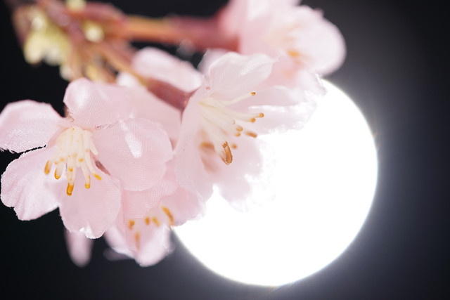 満月と桜みたく撮れて満足です´ω`