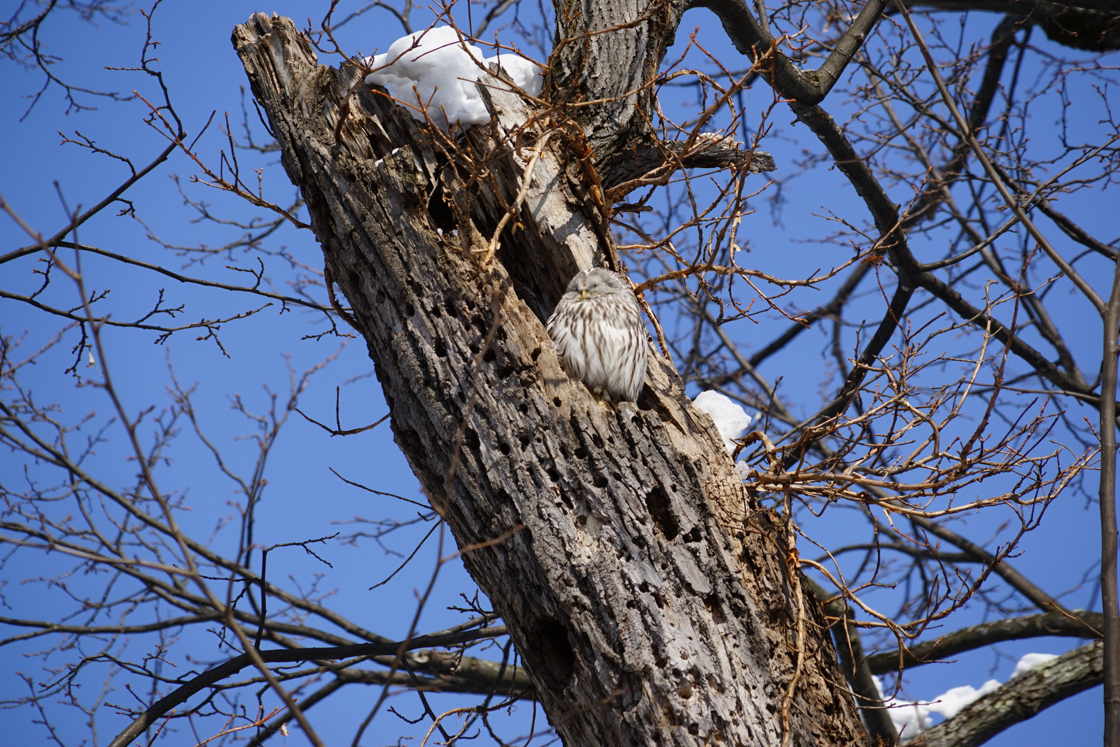 3月の旭山公園でフクロウが休んでいます。