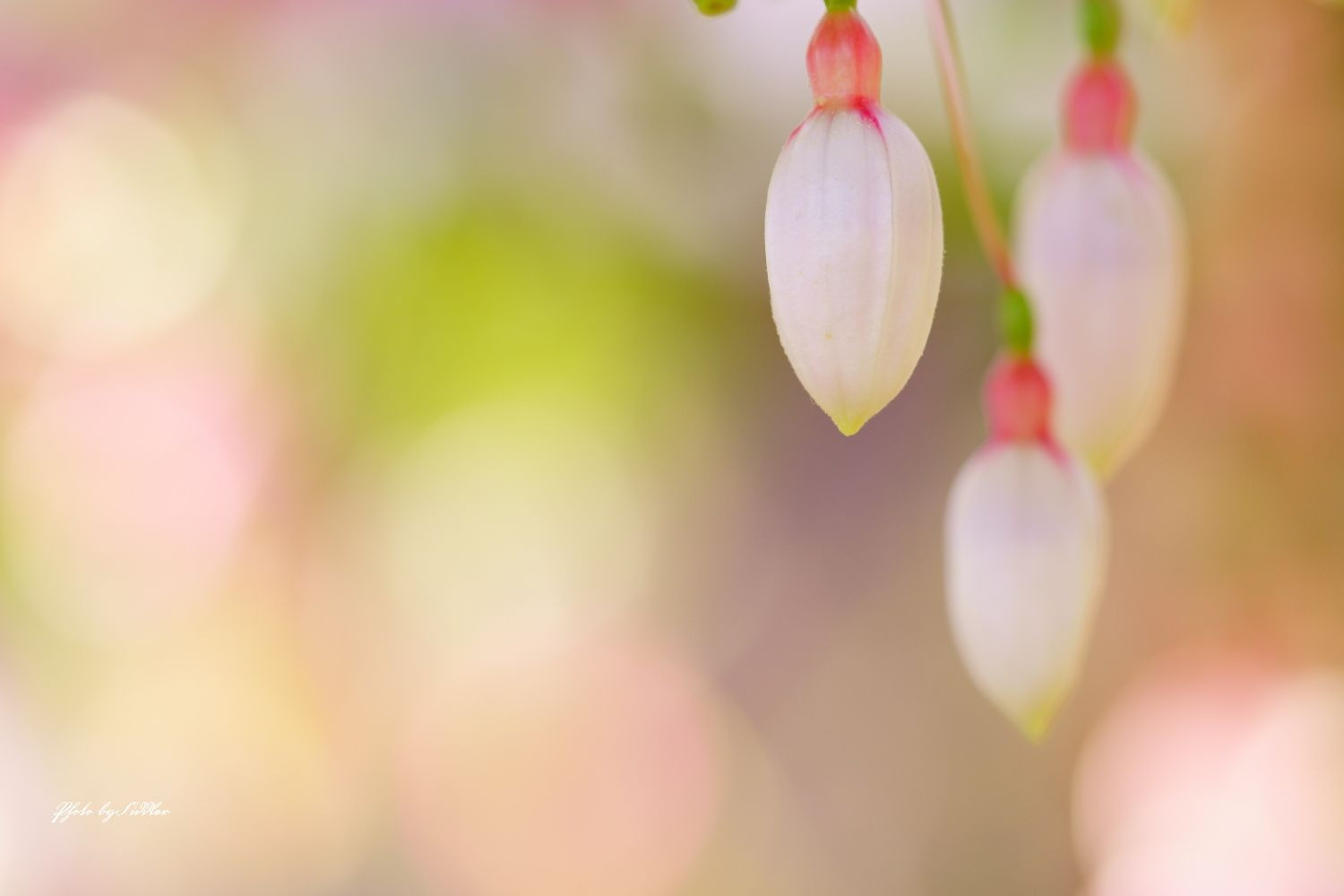 植物公園のフクシア温室でパシャリ~ 周りを春色に照らすランプのような フクシアの蕾♪