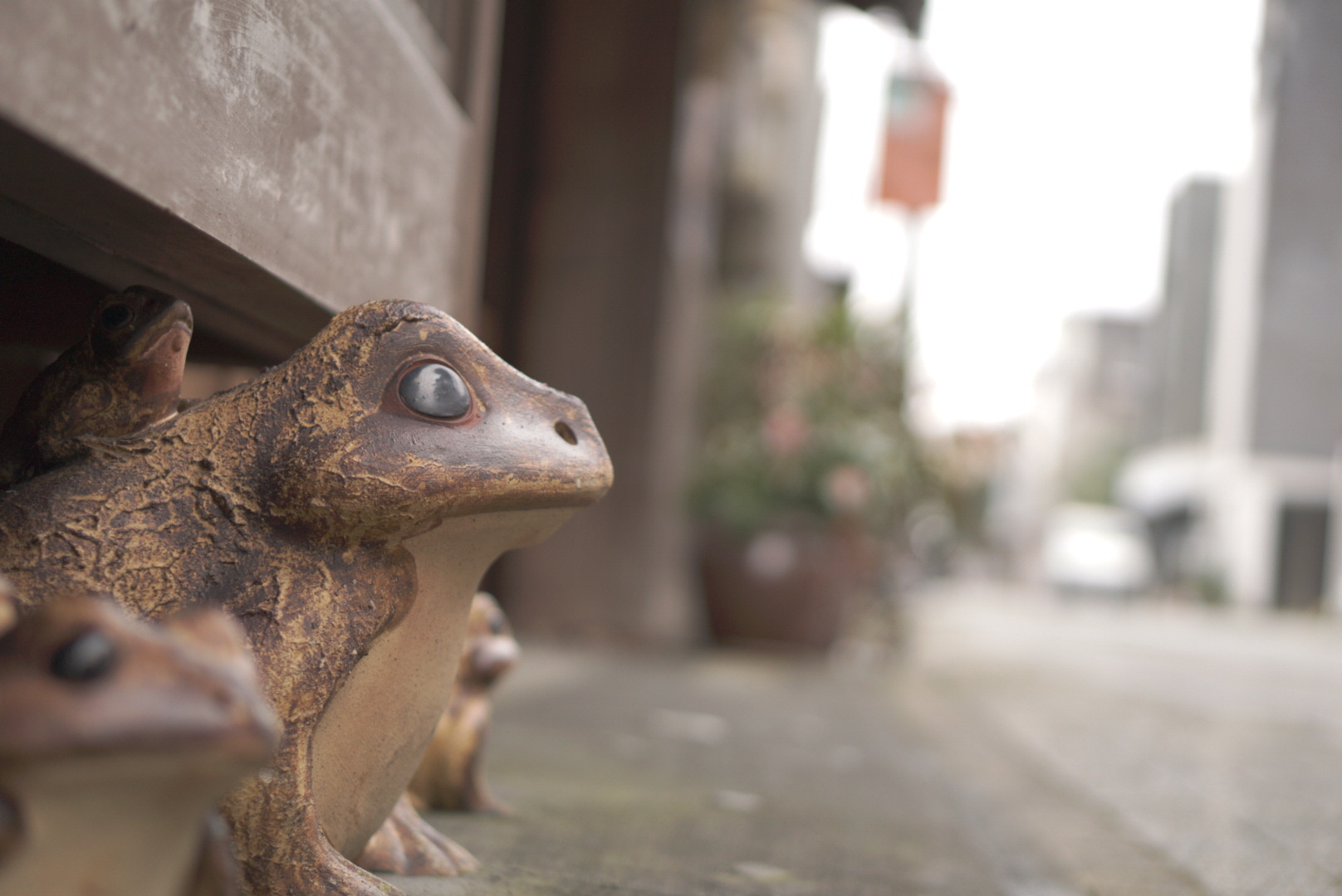 ひっそりと佇む 道端のかえる