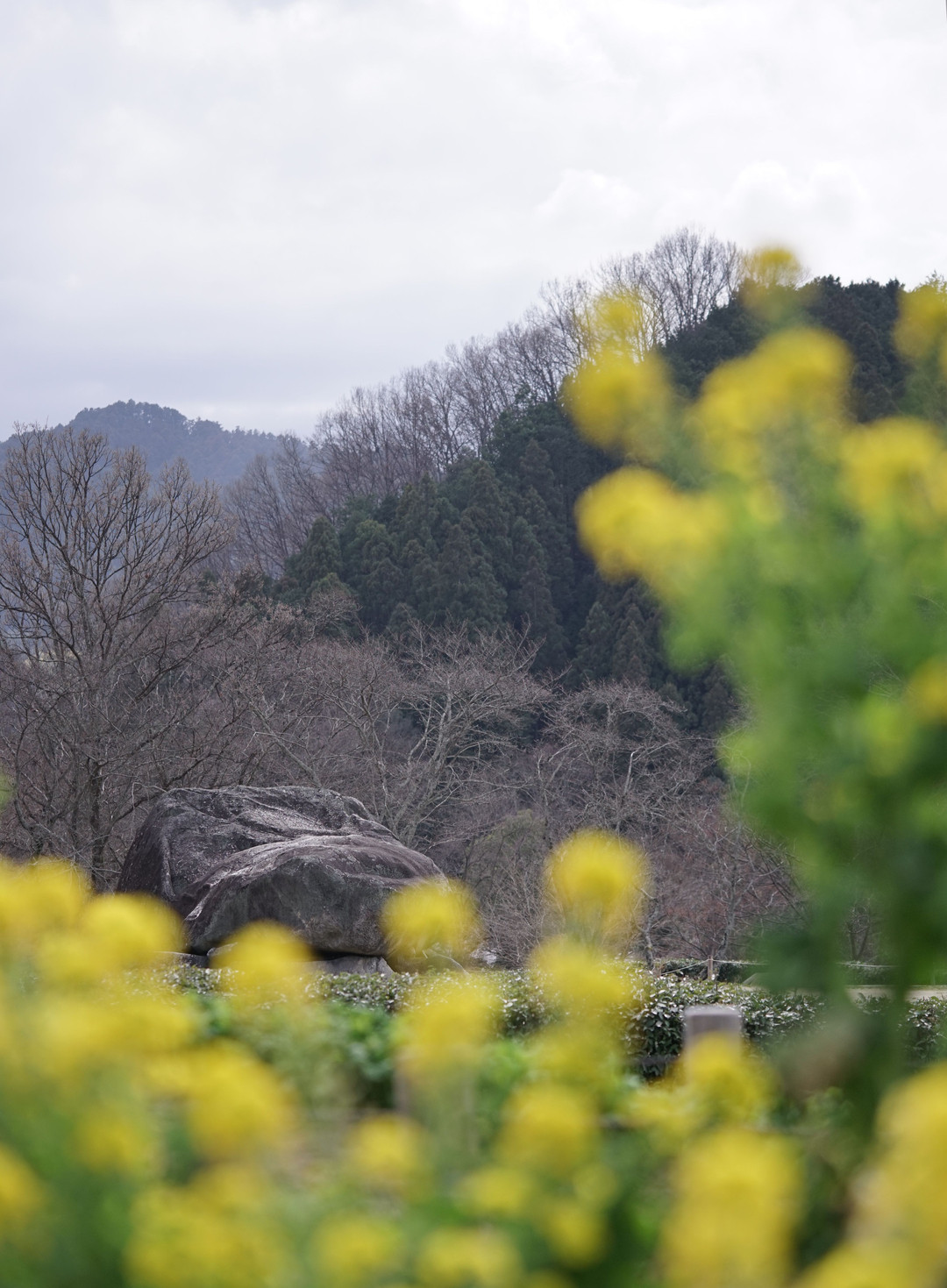 菜の花を求めて明日香村に行ったのですが、あまり菜の花はありませんでした。 石舞台のそばに少し。菜の花をぼかすか、菜の花をぼかすか迷いました。