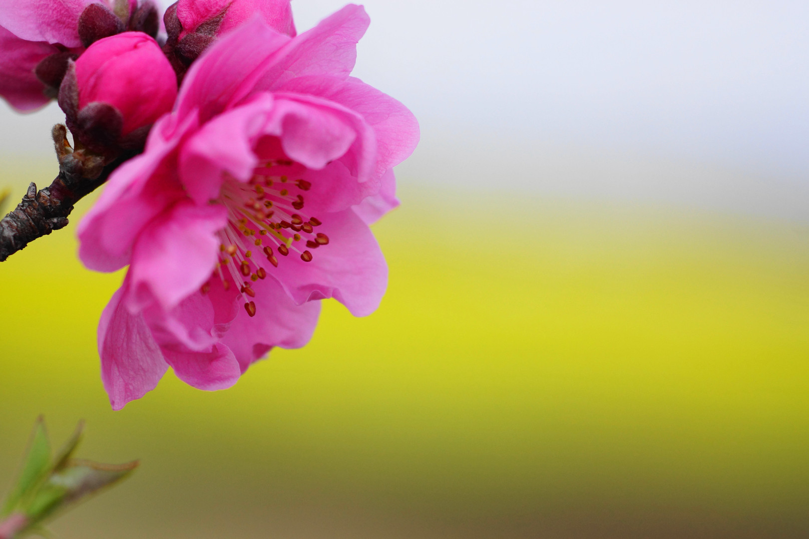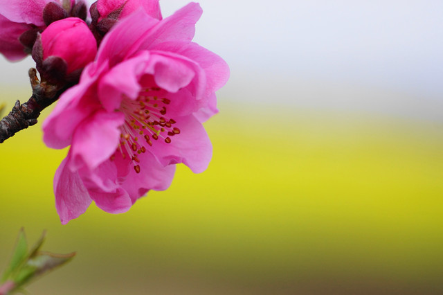 この時期にいつも来る場所です。もう少しすると、満開の花桃と菜の花の対比が見事になります。今日はまだ少ししか咲いていませんでしたが、他に咲いている花も含めて寒風の中、楽しみました(^^;