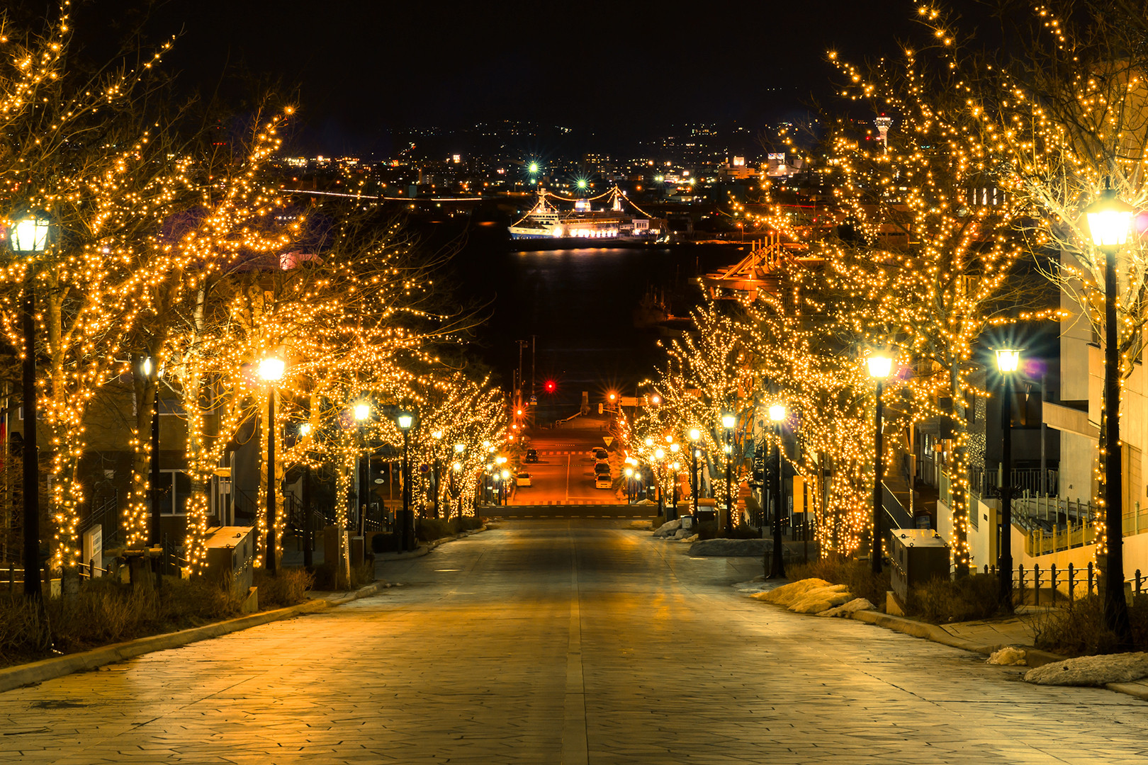 函館の数ある坂道の中でも一番有名な「八幡坂」の頂上から撮った一枚です。