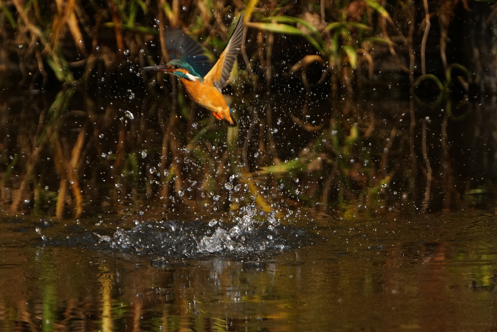 水抜き工事が終わり昨日小魚などを戻した地元の池で。半年振りにカワセミ撮影。