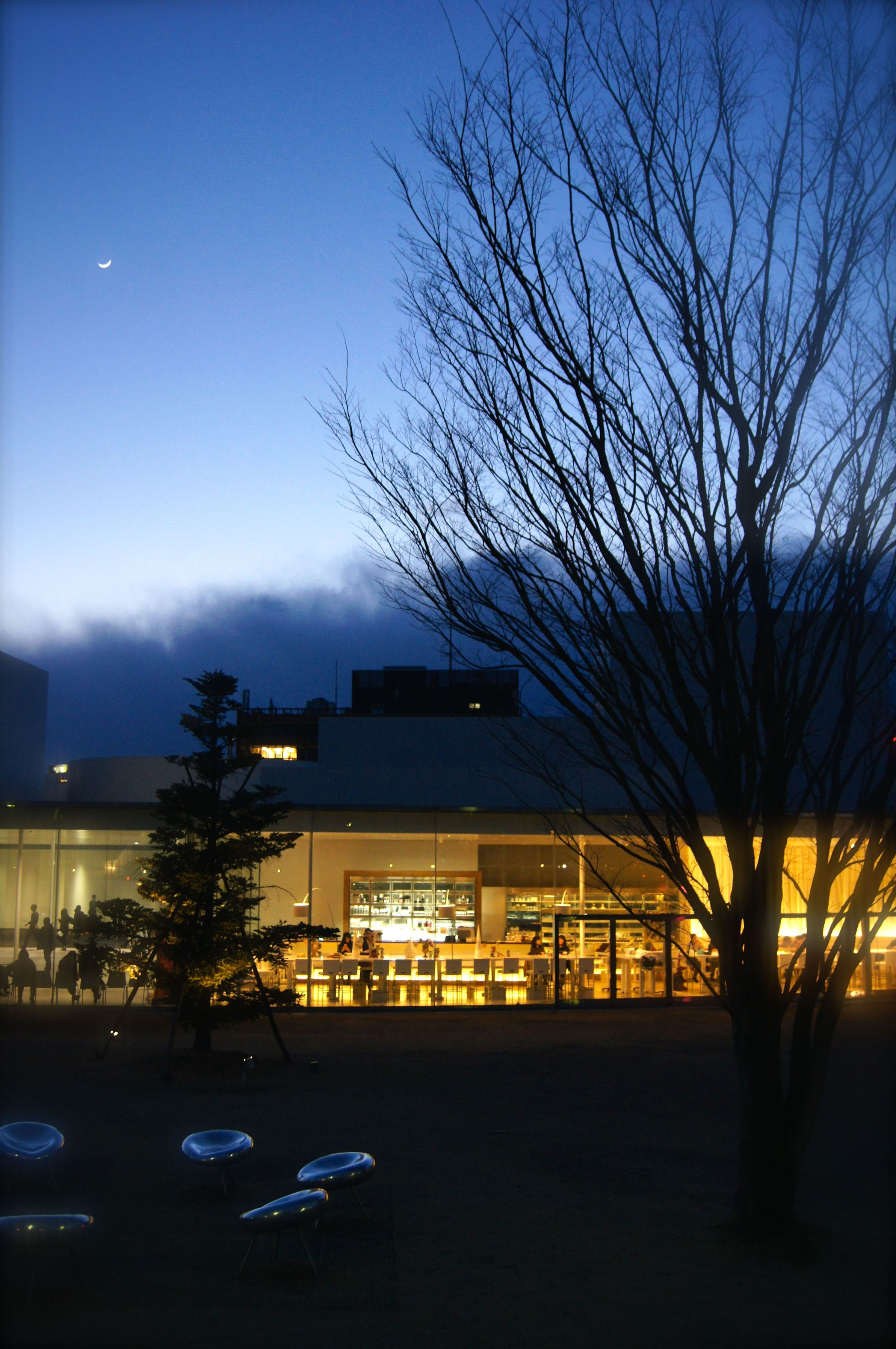 夜の金沢21世紀美術館にて。 とても寒い夜でしたが、夜の方が落ち着いてとても奇麗でした。