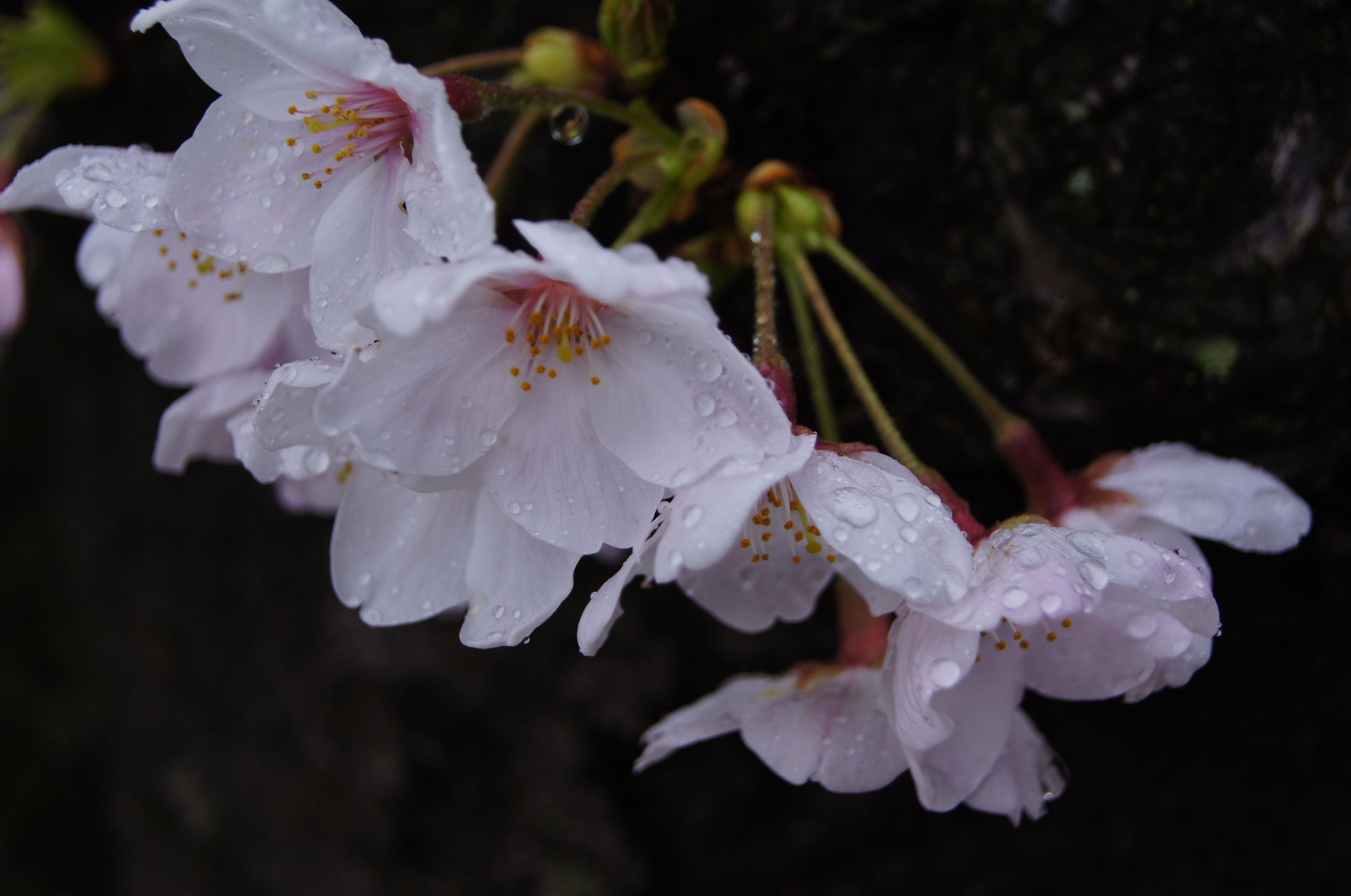 NHKホールの某番組のセット公開を見に行くついでに、雨だけど大阪城の桜も見に行ってきました。雨粒の桜を撮るって「憧れ」だったのですが、寒くてカメラは濡れるし、傘持ちの助手(娘)は飽きて、帰りを急かされるし、もうちょっとゆっくり撮りたかったです