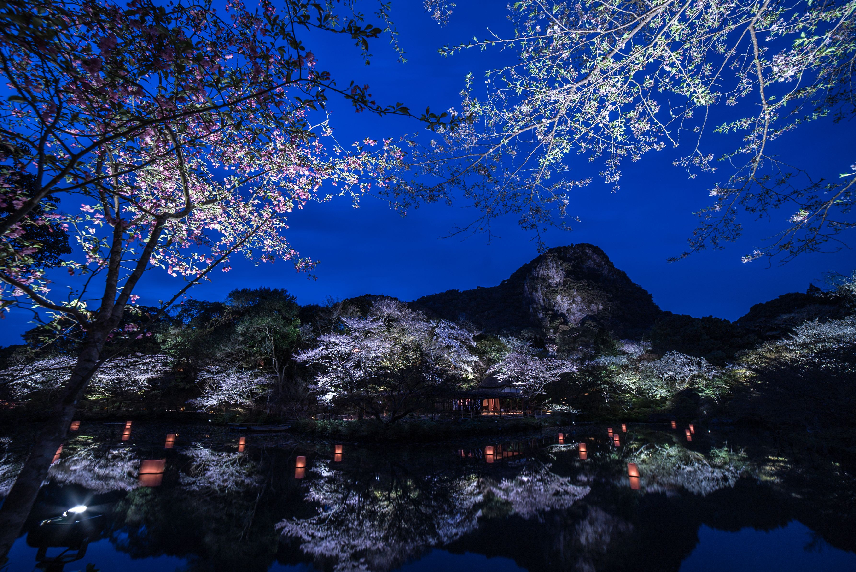 武雄市 御船山楽園の桜のライトアップです。 桜のライトアップは数あれどここのライトアップは特に美しいと思います。 池に映る桜と御船山を眺めると本当にうっとりで至福の時です。 ただ、今年は一番満開の時に行けなかったのでそれが心残り。 来年は満開の時に行きたいです。