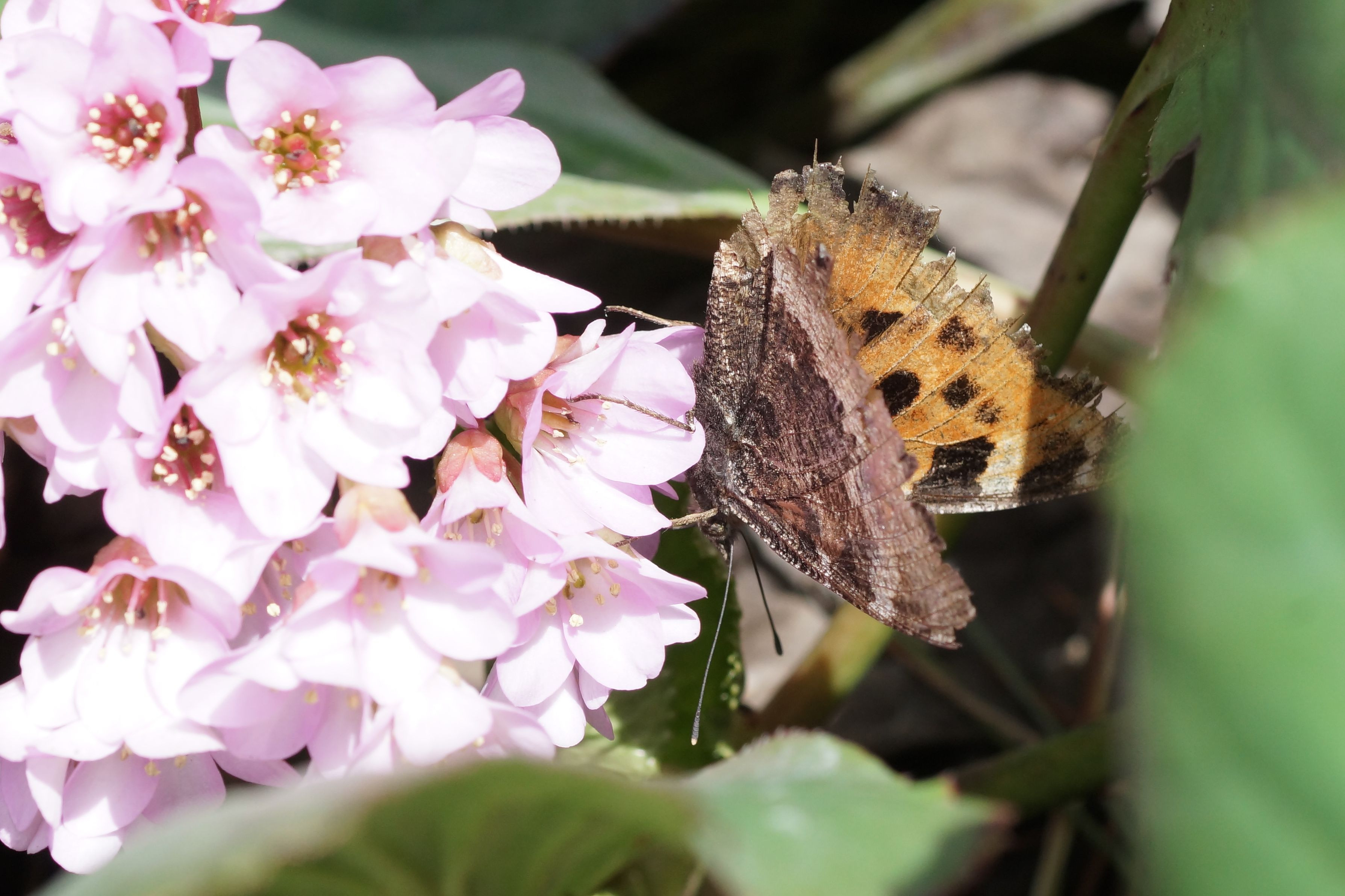 家の庭にきました翅が傷んでいるので越冬した個体かな