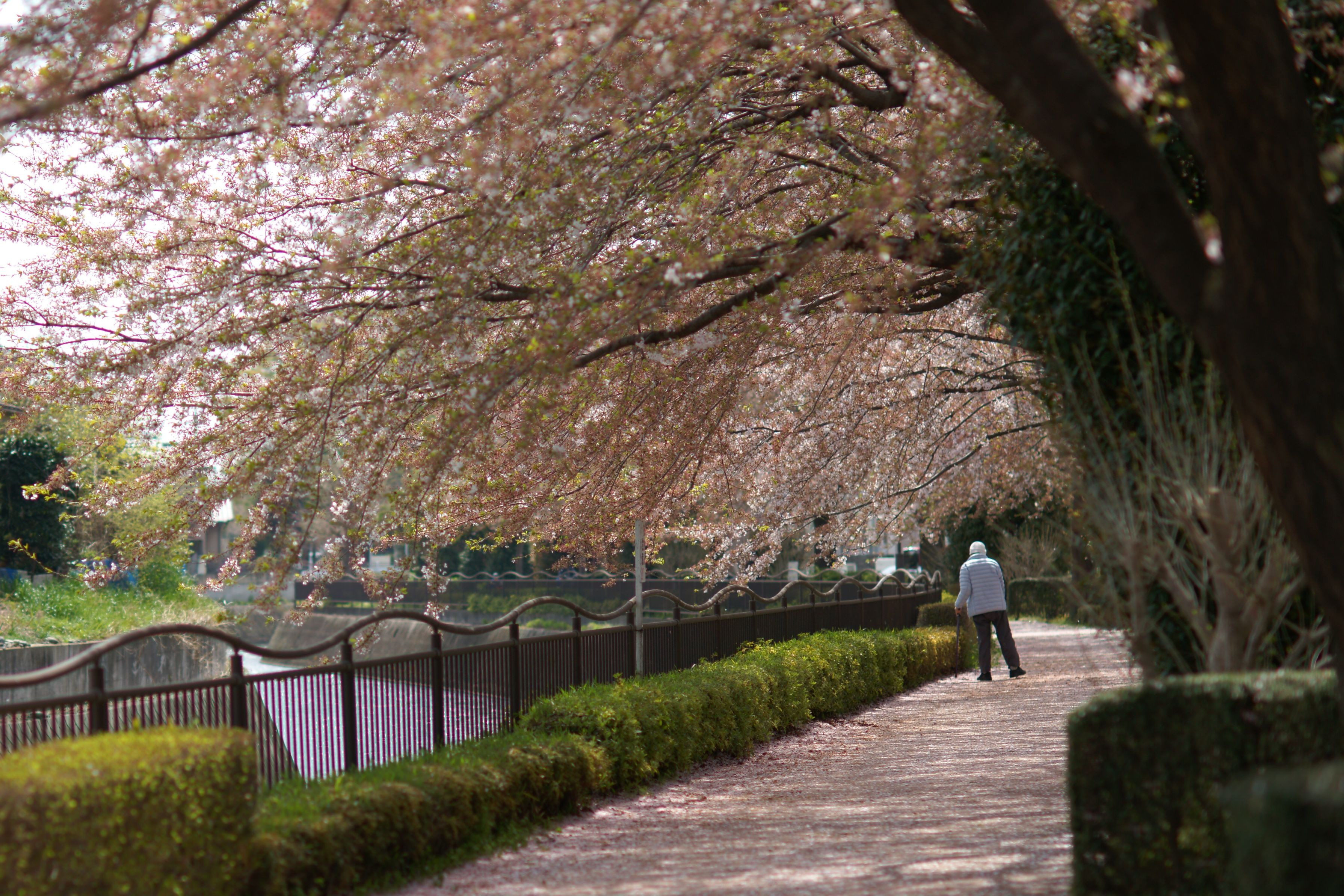 桜並木の遊歩道にて
