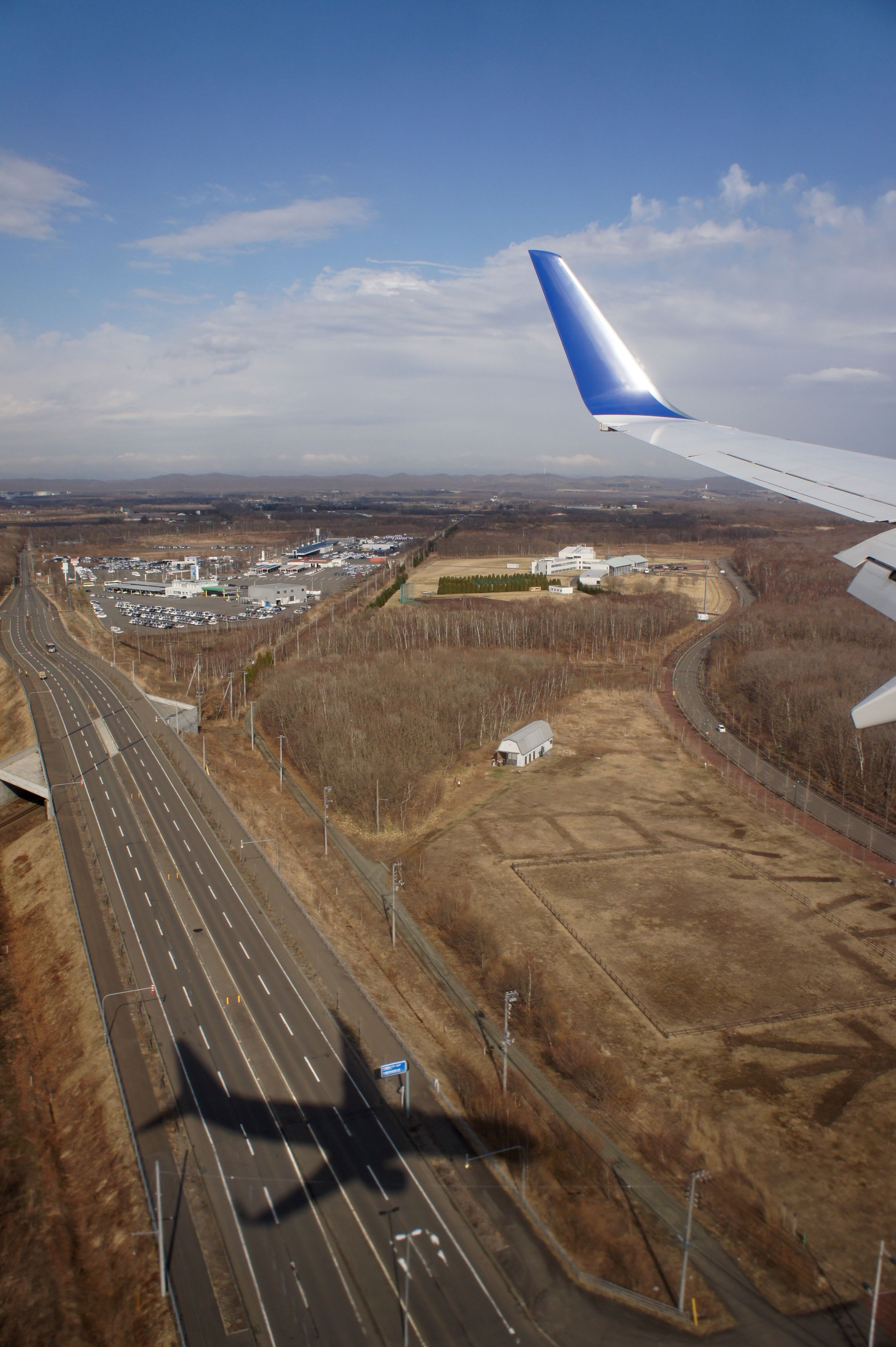 機内より影を撮っていたのですが、後で画像を見ると「ガンバレ日本」の文字が!!