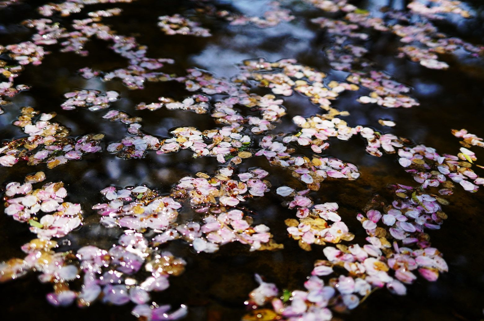 前日の風で散り落ちた桜の花びらが 最後の輝きを見せてくれました。