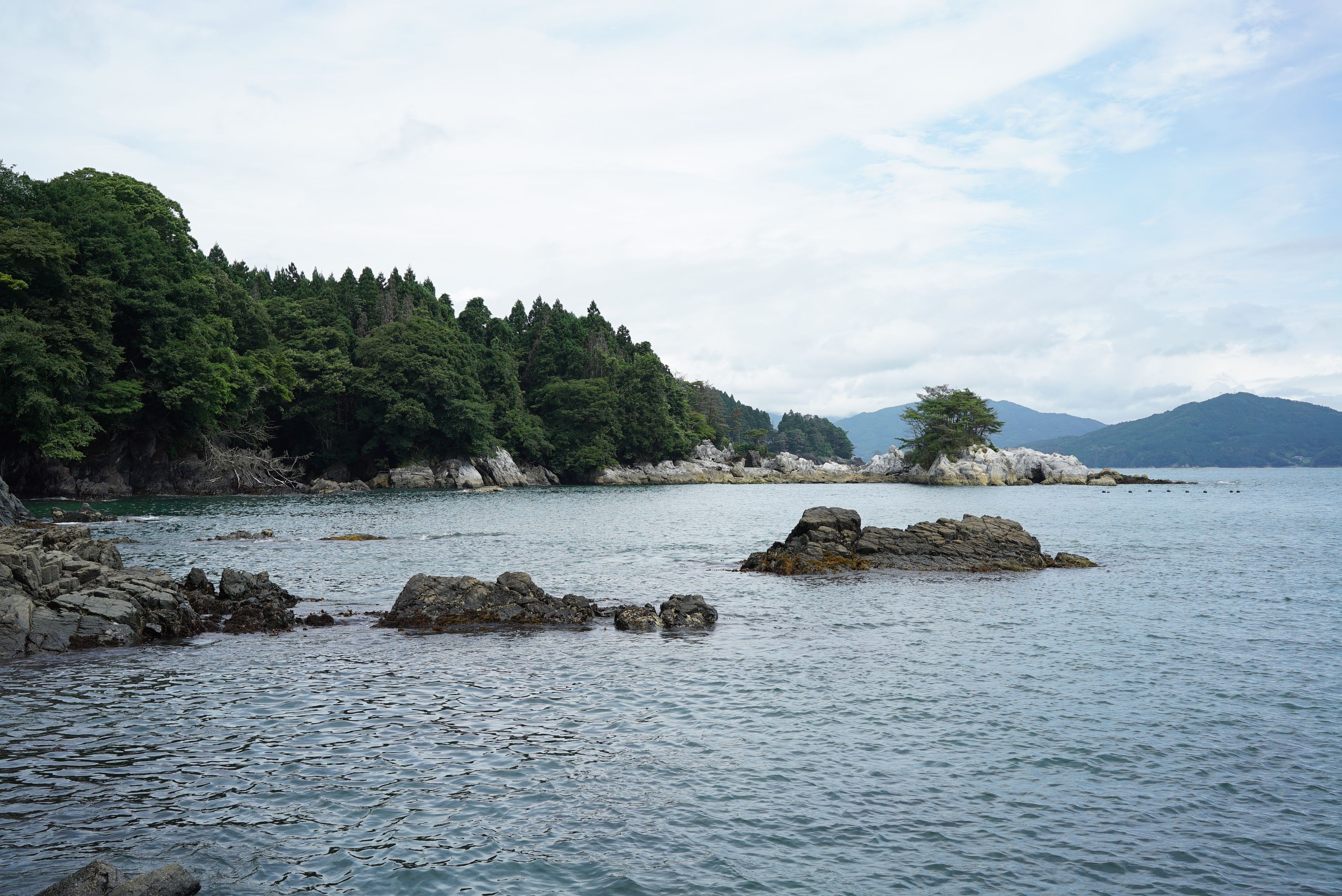 大理石海岸です。 夏によく行きます。 岩肌が白くてきれいです。