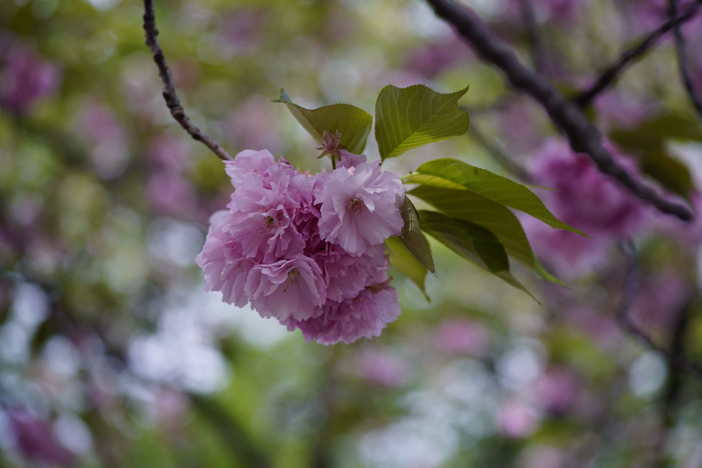 八重桜はやわらかな花びらと、グラデーションのかかった桜色が魅力です。