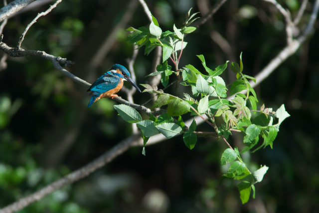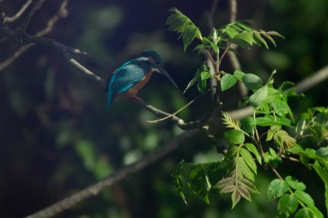新緑の木漏れ日とカワセミさん