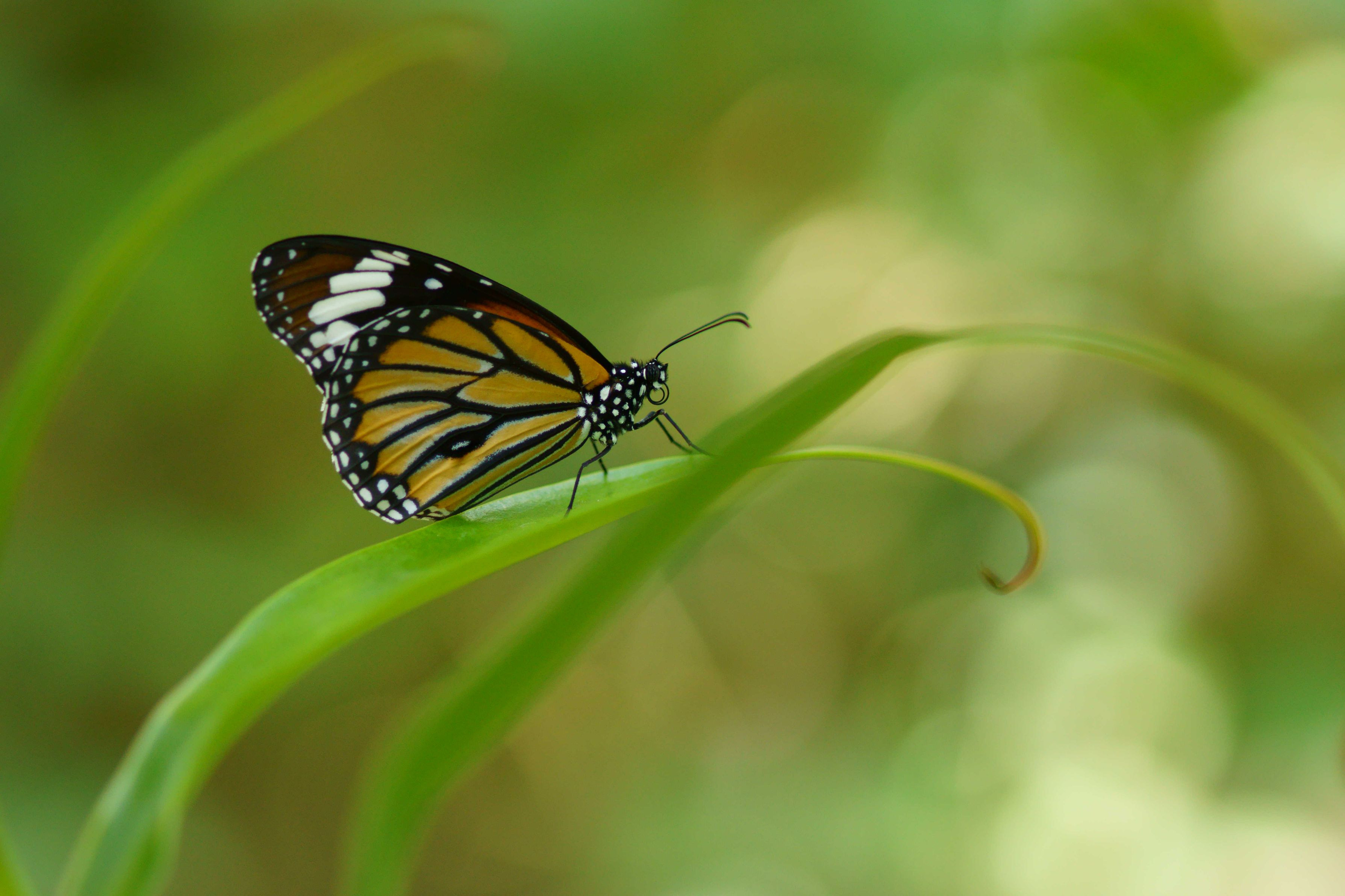 家族で石川県ふれあい昆虫館を 訪れた時の一枚です。 オレンジ色が鮮やかなこの蝶は スジグロカバマダラです。 本当は沖縄より南の島にいる蝶です。