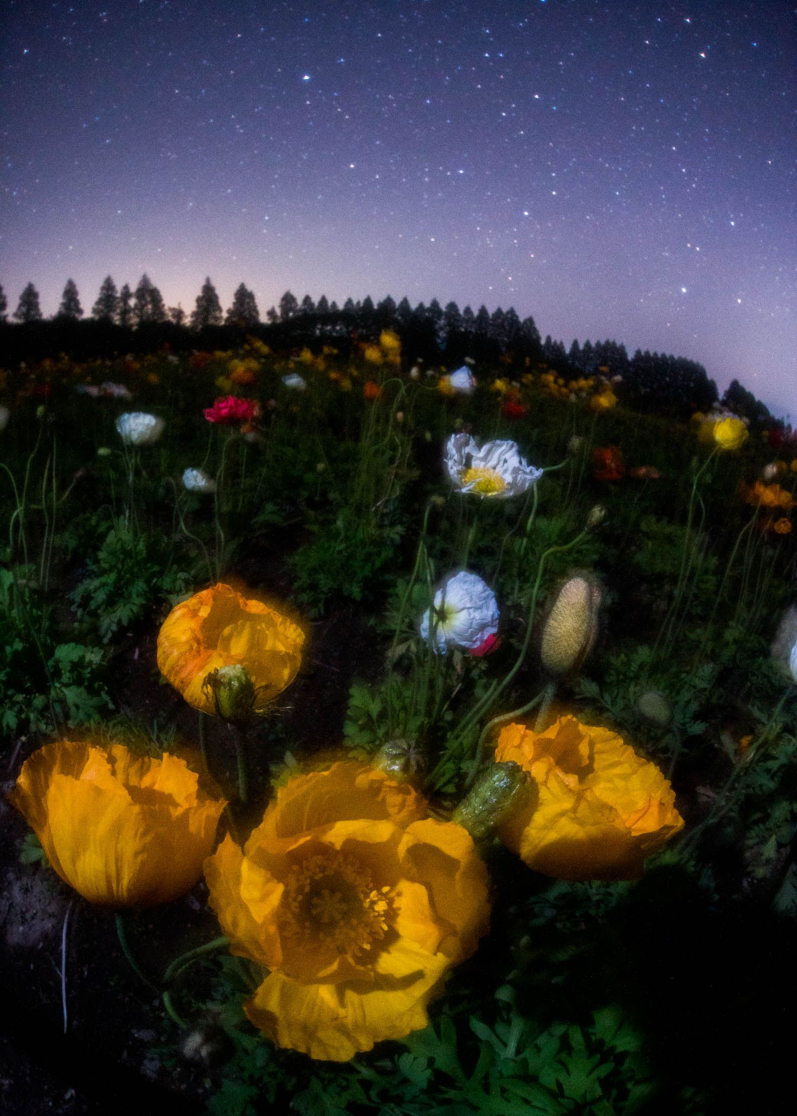 ポピーと星空です。黄色のポピーを楽しく表現しました。