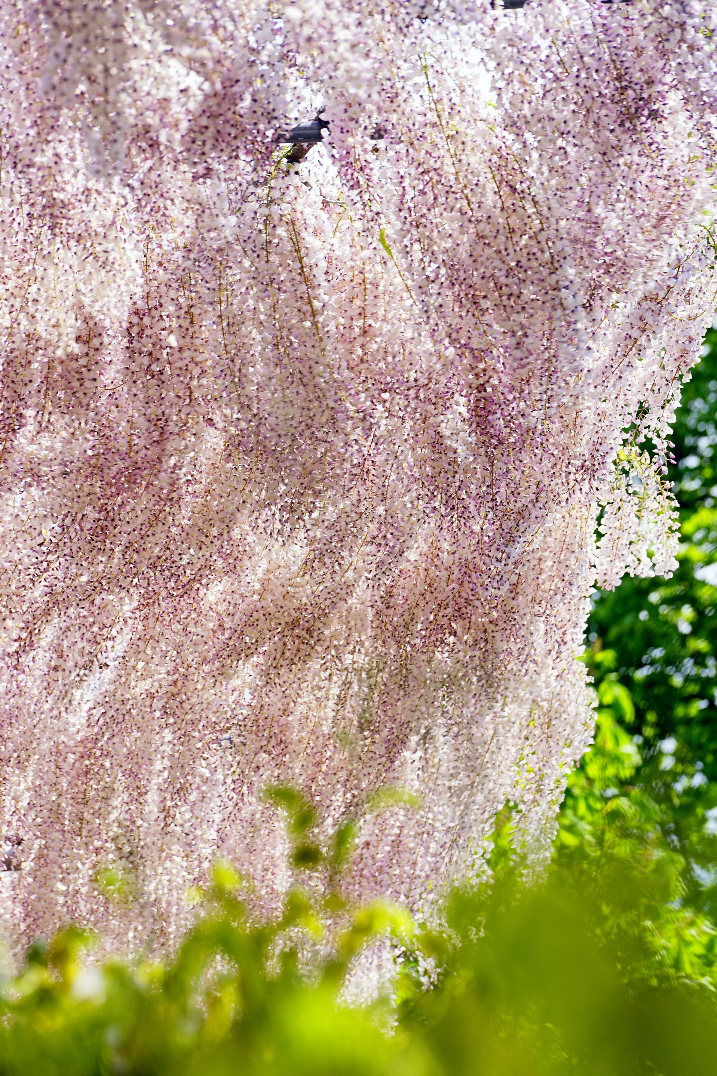 うす紅藤に太陽光が透過して、