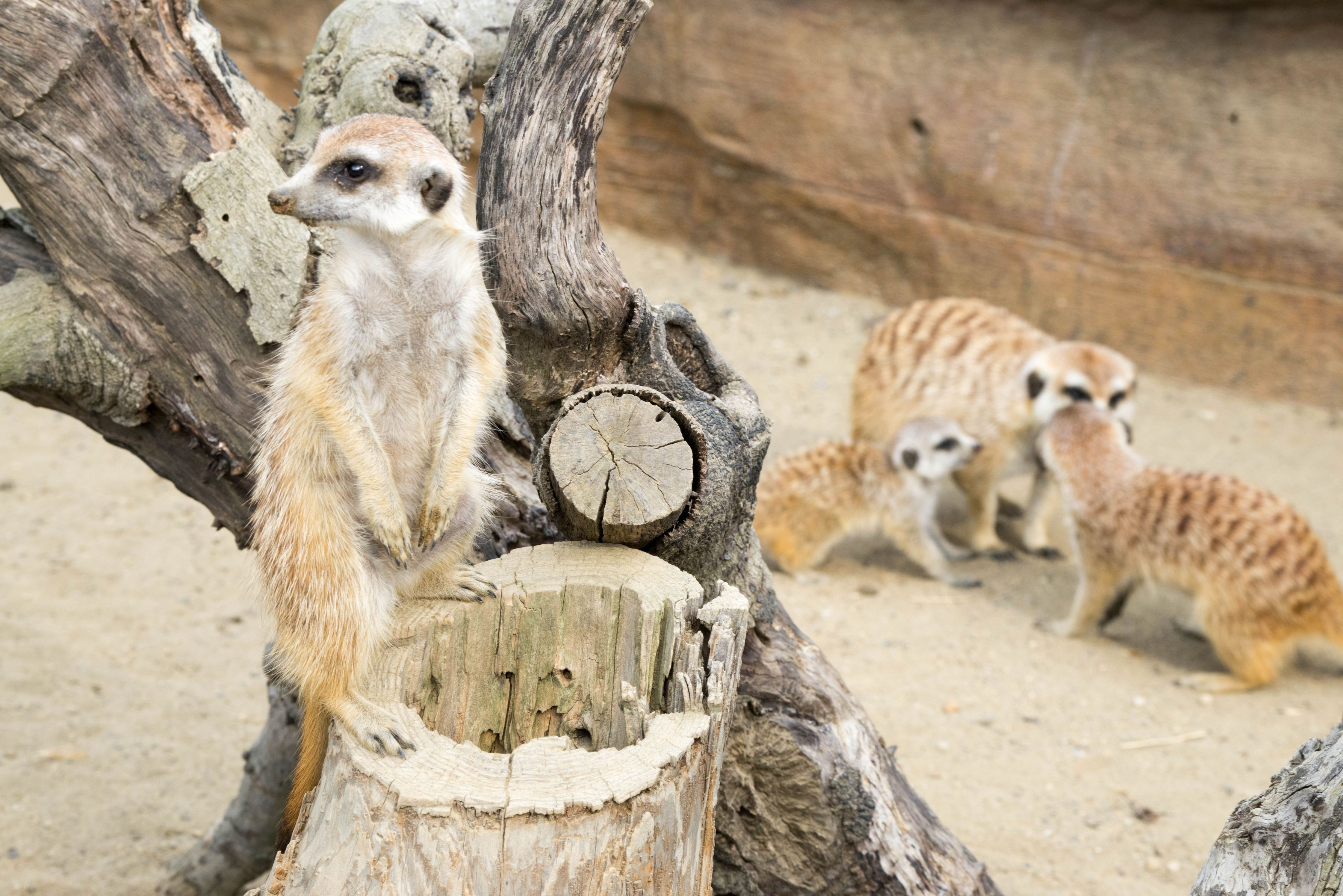 よこはまズーラシアのミーアキャットです。家族の横で常に気を張っているお父さん(?)が印象的でした