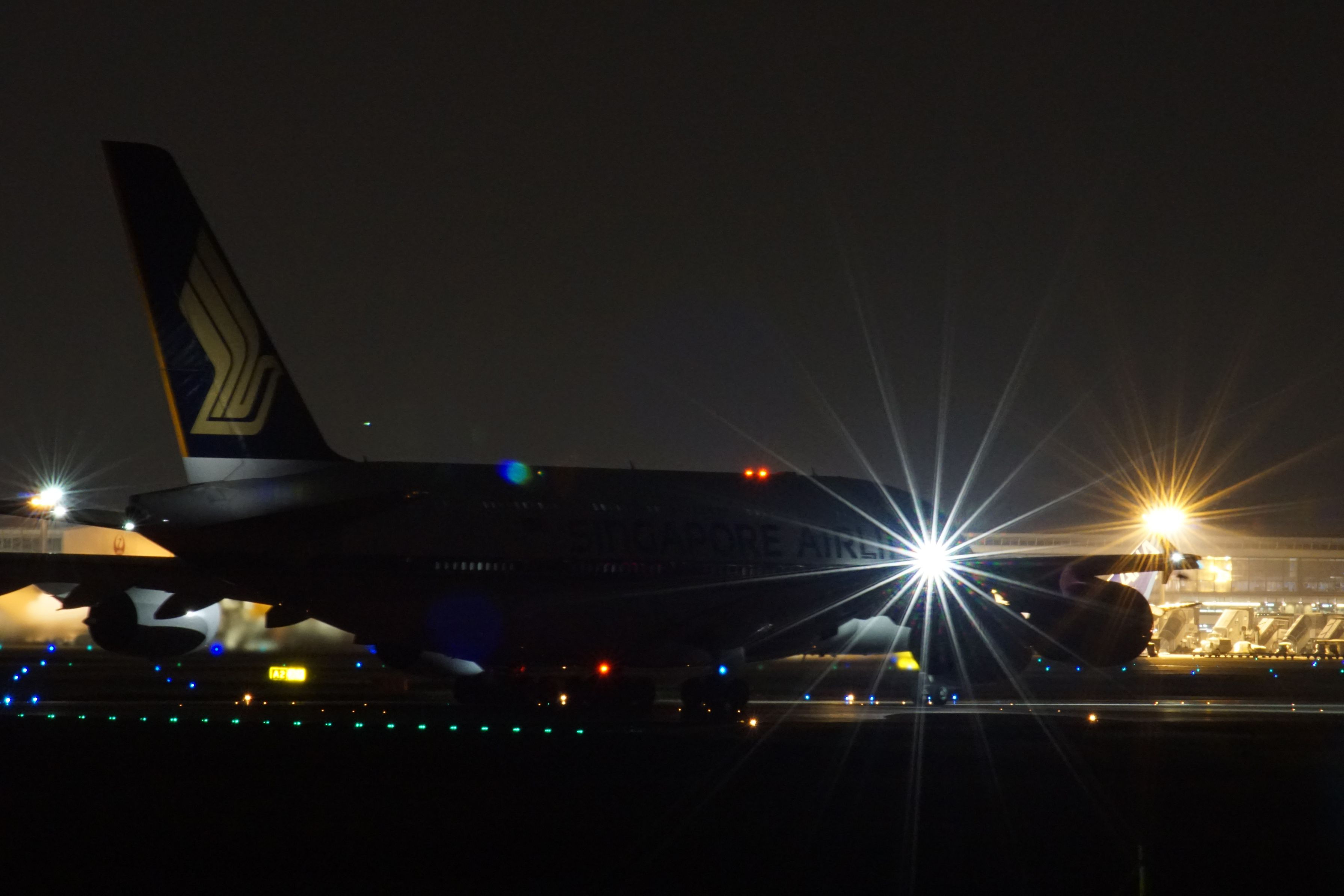 離陸前に滑走路上で止まった時に撮りました。 A380は大型機なので、なかなか止まってくれません。