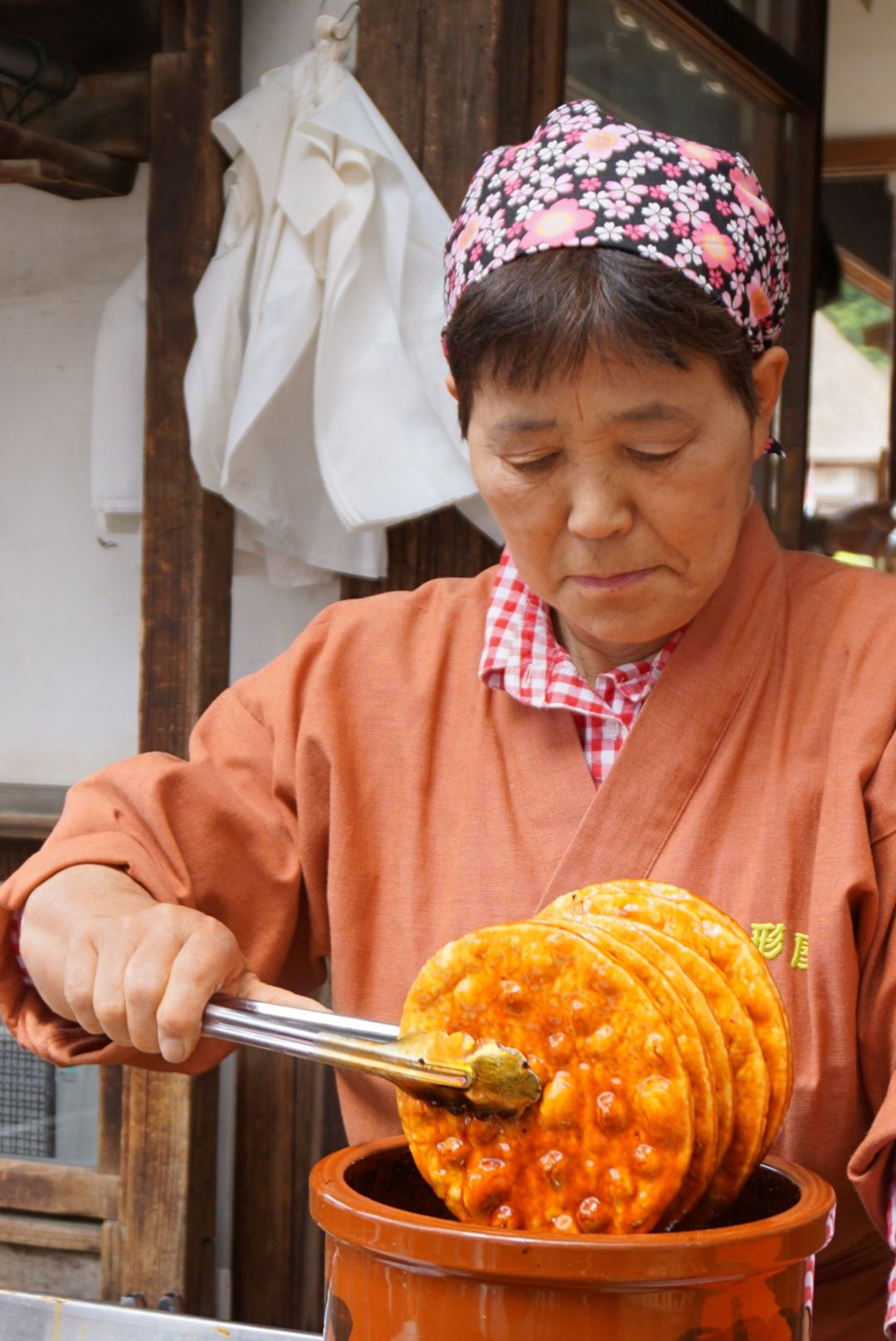 大きな焼きたてせんべい店のお姉さん。 毎日毎日せんべい焼き続けているだけで全然やる気はない!と笑顔でおっしゃってました(・ω・)