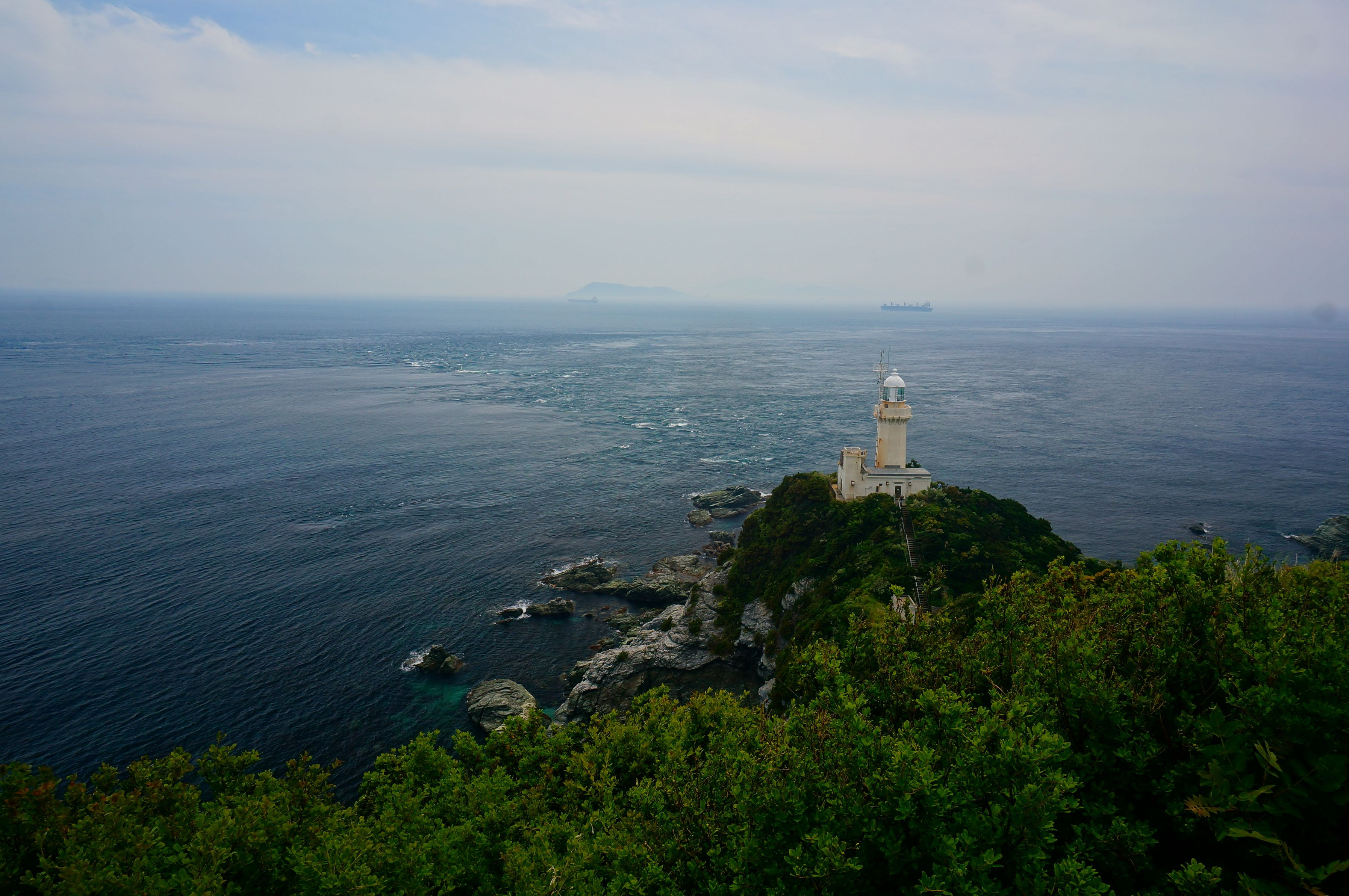 GWサイクリング3日目の目的地、四国最西端の佐田岬灯台です。 水平線上に見える陸地は大分です。