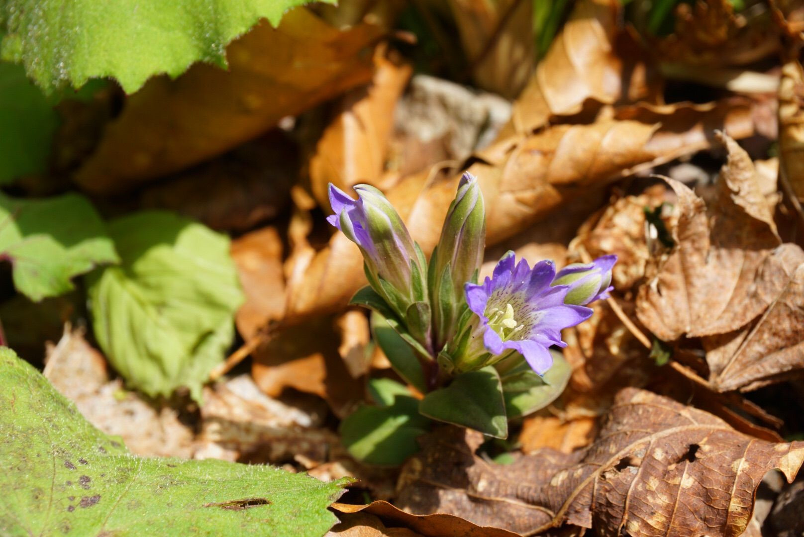 ミツバノバイカオウレンとフデリンドウ。 山野草の可憐さ好きです。
