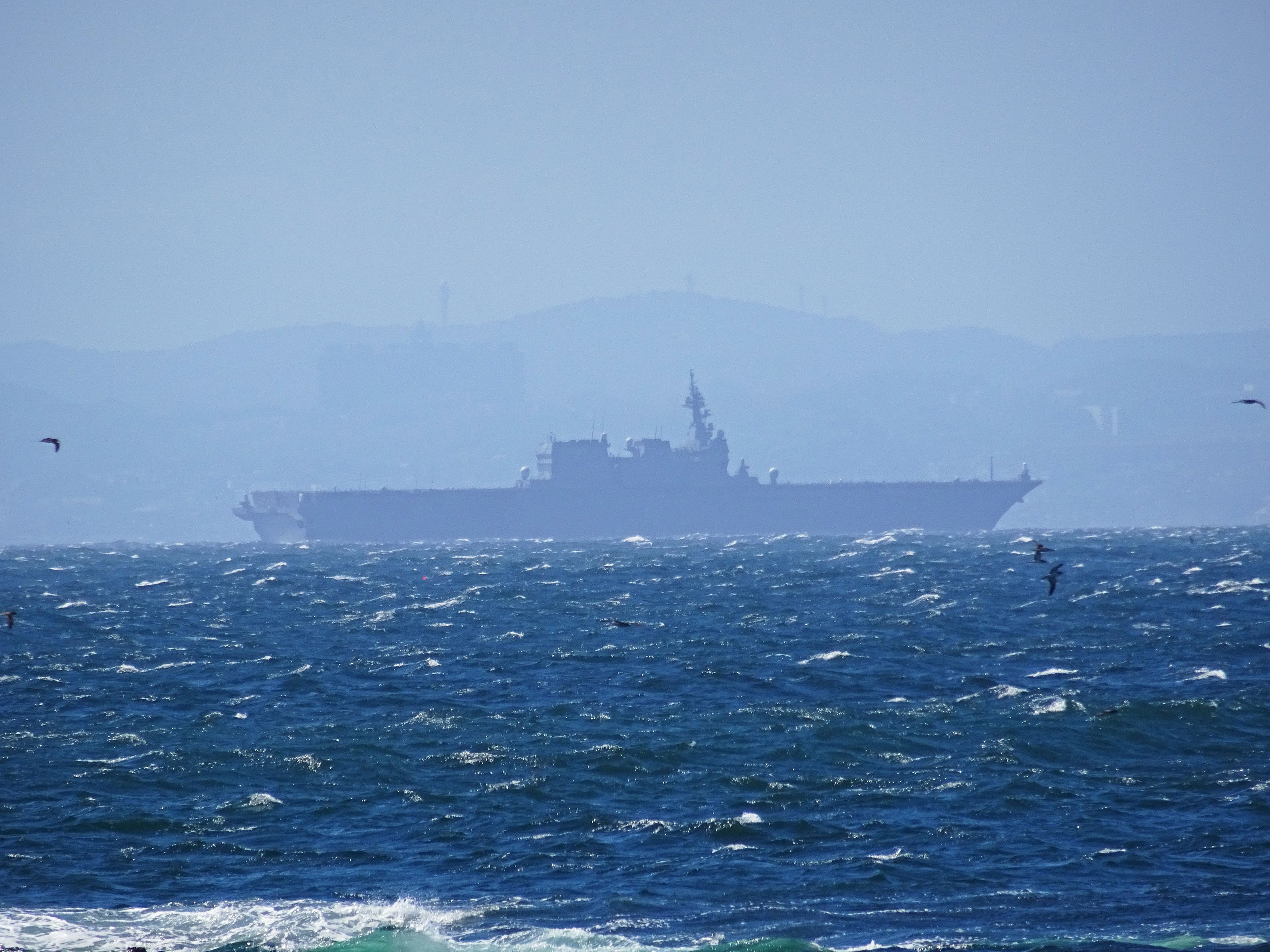 南房総に行った際、強風の中を航行する我が軍の”ヘリ空母いずも”を遠くに発見。 HX60Vの光学30倍ズームのお陰で撮影出来、艦種も識別出来ました。