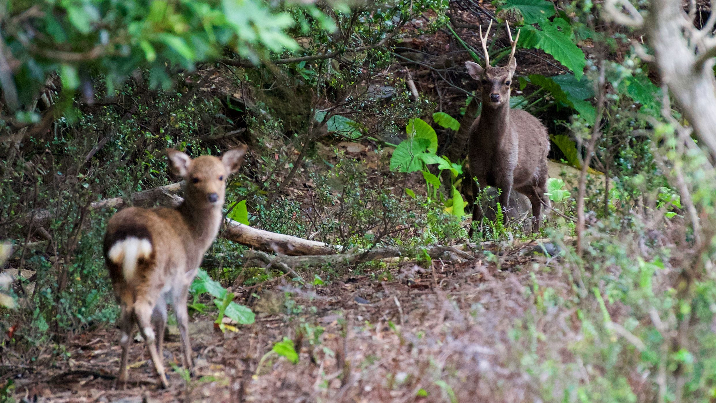 立派な角を生やしたヤクシカに出会いました。