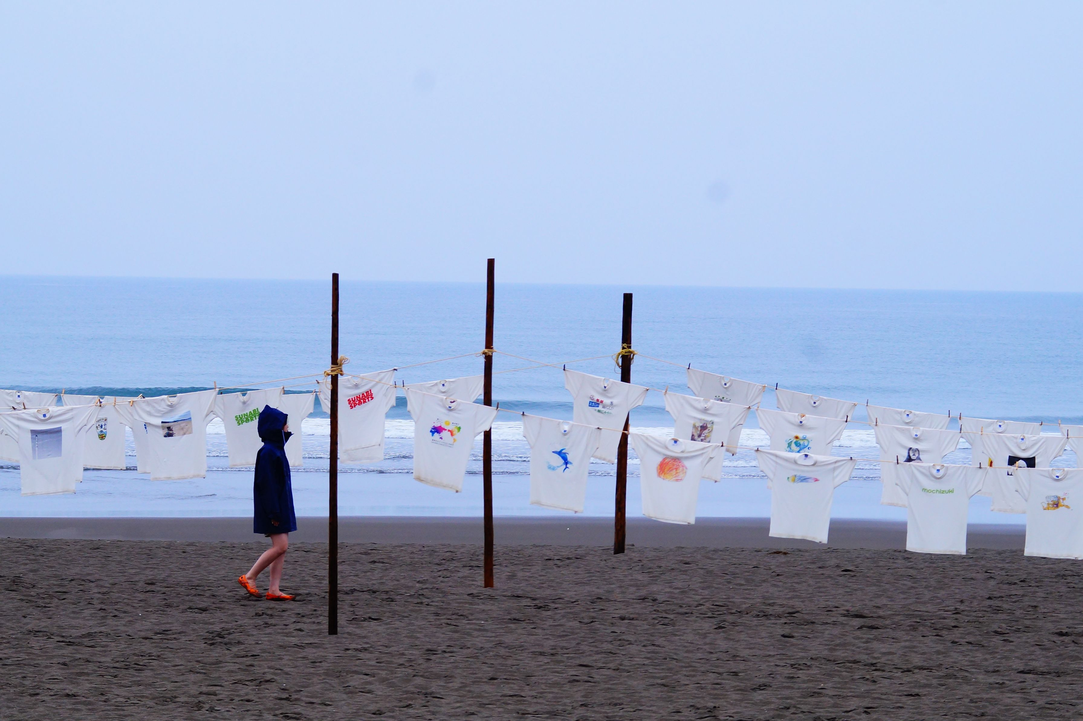 雨の砂浜美術館Tシャツアート展にて(^o^)