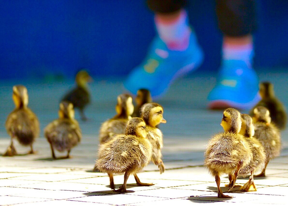 コガモちゃんと 子供たちが楽しく遠足に来ていました。