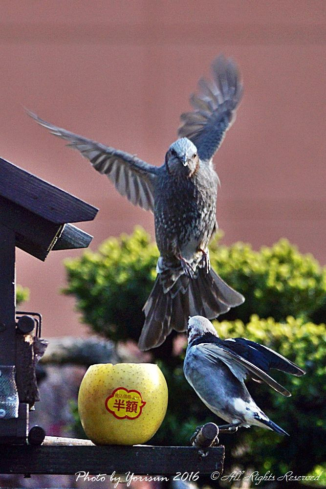 ヒヨドリVSコムクドリ・オス